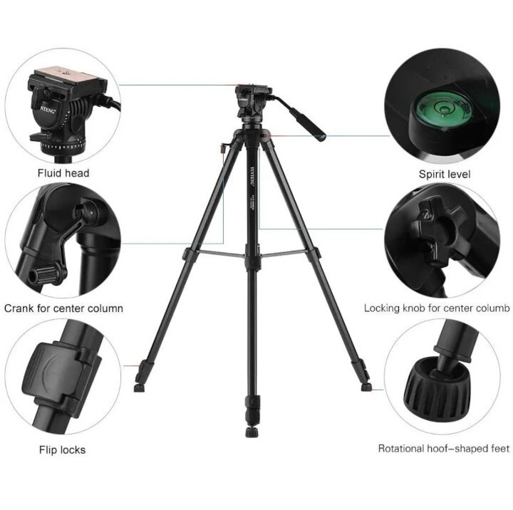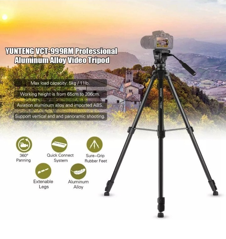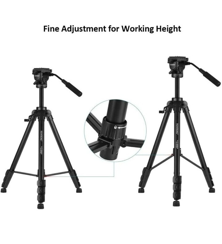 YUNTENG 2M VCT-999RM Video Camera Tripod 4-Section Adjustable With Carrying Case