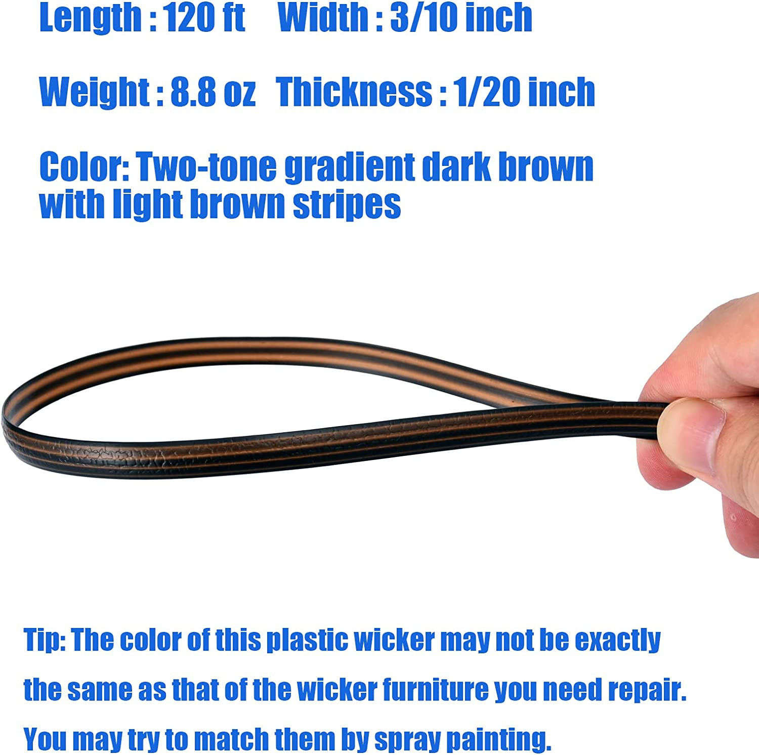 Wicker Repair Kit with Weaving Tool 120Ft Two Tone Gradient Dark Brown Stripes