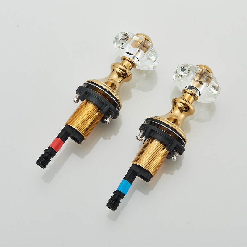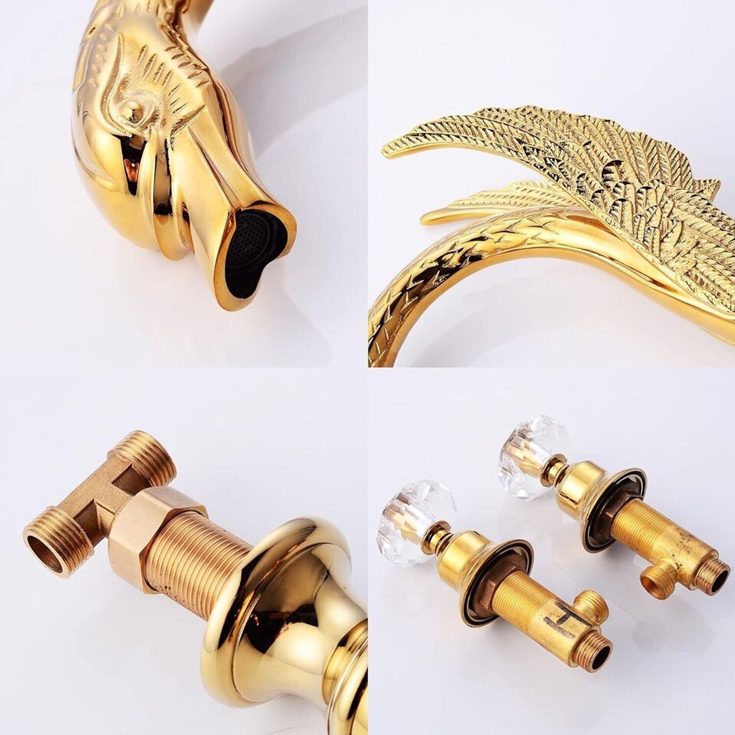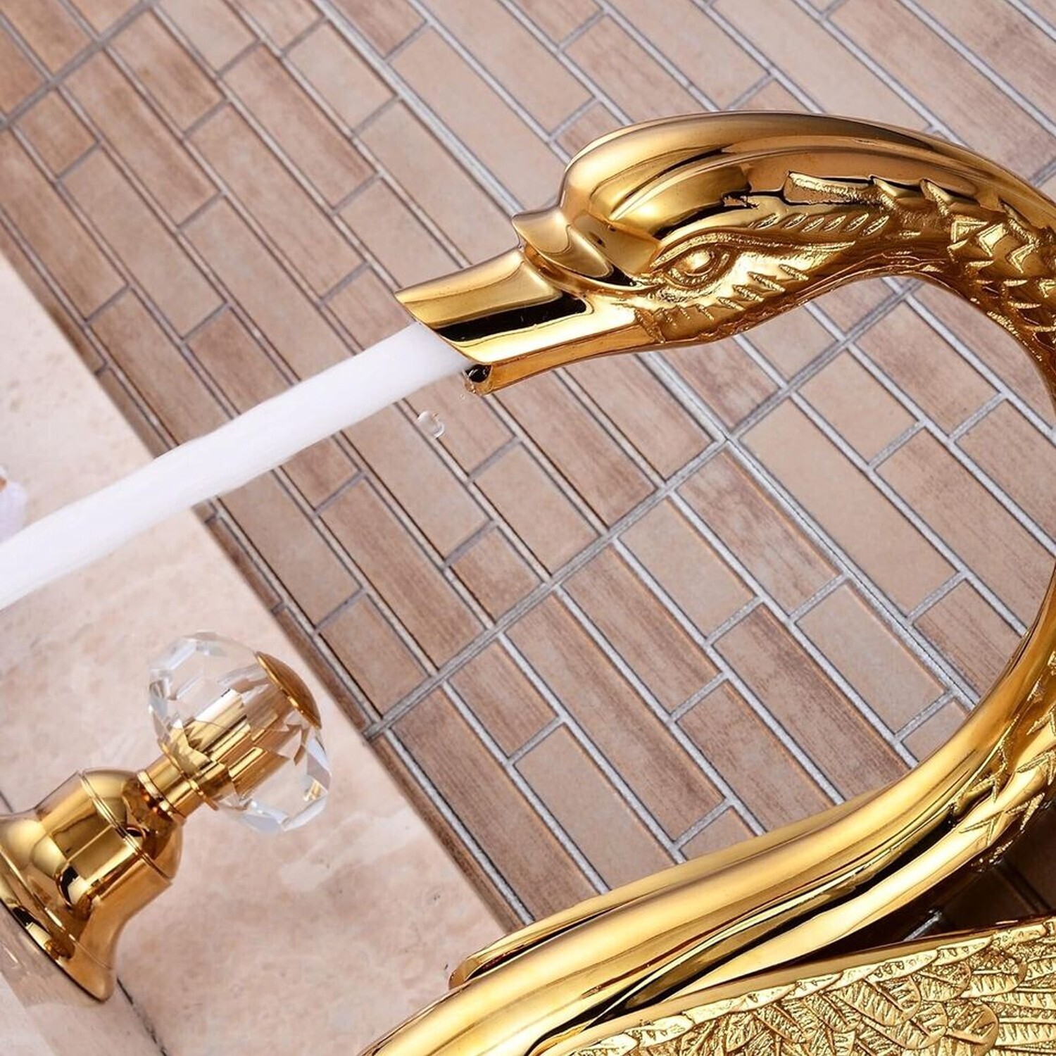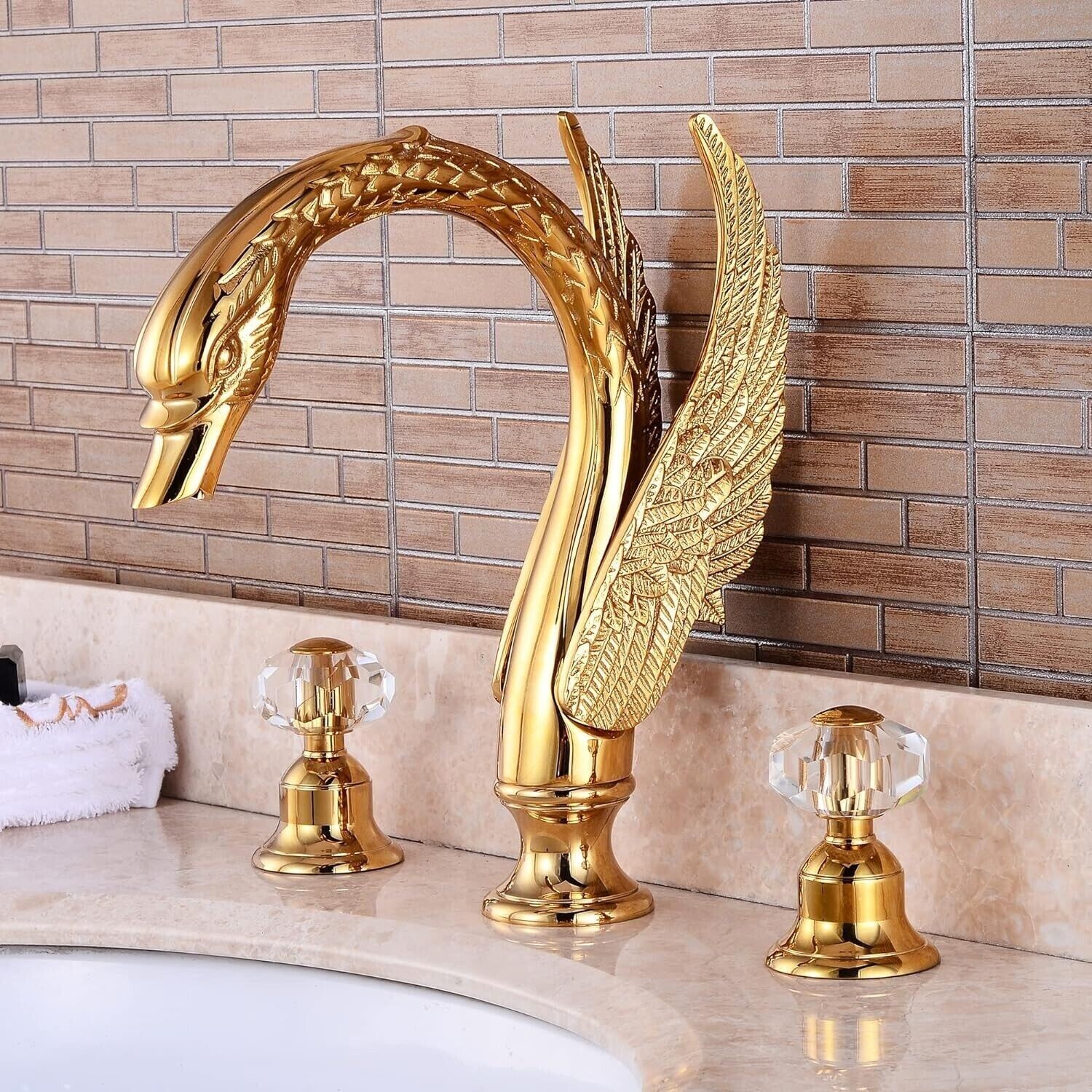 Gold Swan Waterfall Bathroom Basin Sink Faucet 2 Cystal Handle 3 Hole Mixer Tap