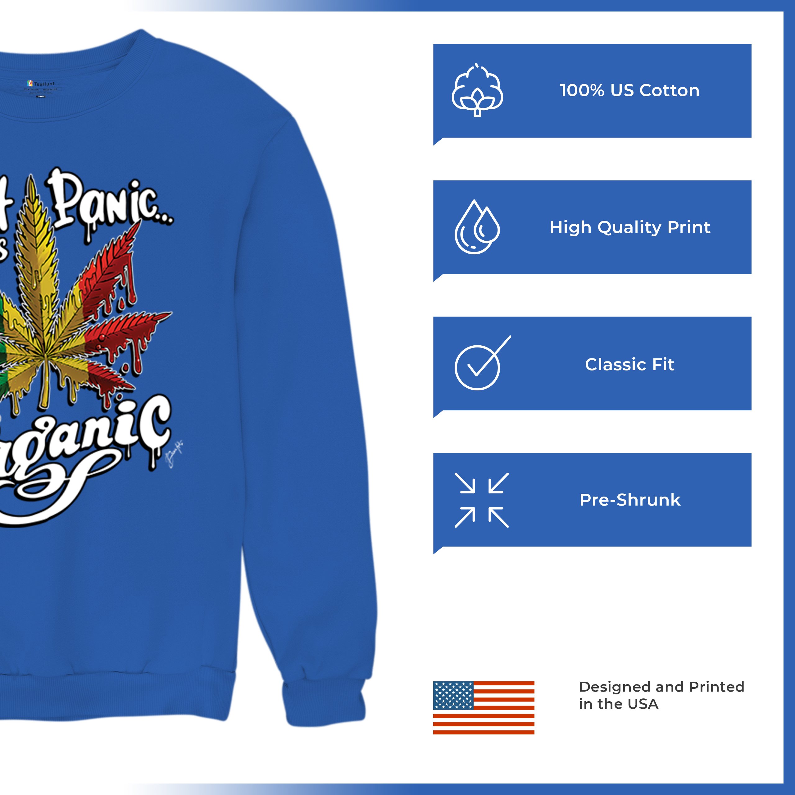 Don't Panic It's Organic Sweatshirt 420 Weed Pot Cannabis Marijuana Crewneck