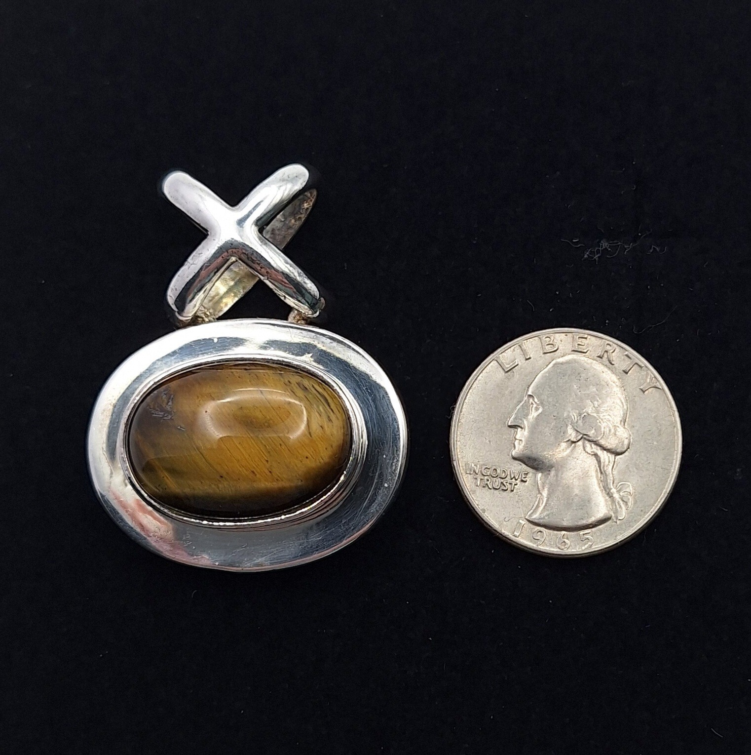 Golden Tiger's Eye Pendant Sterling Silver Plated Bold Oval Cabachon Large Bale