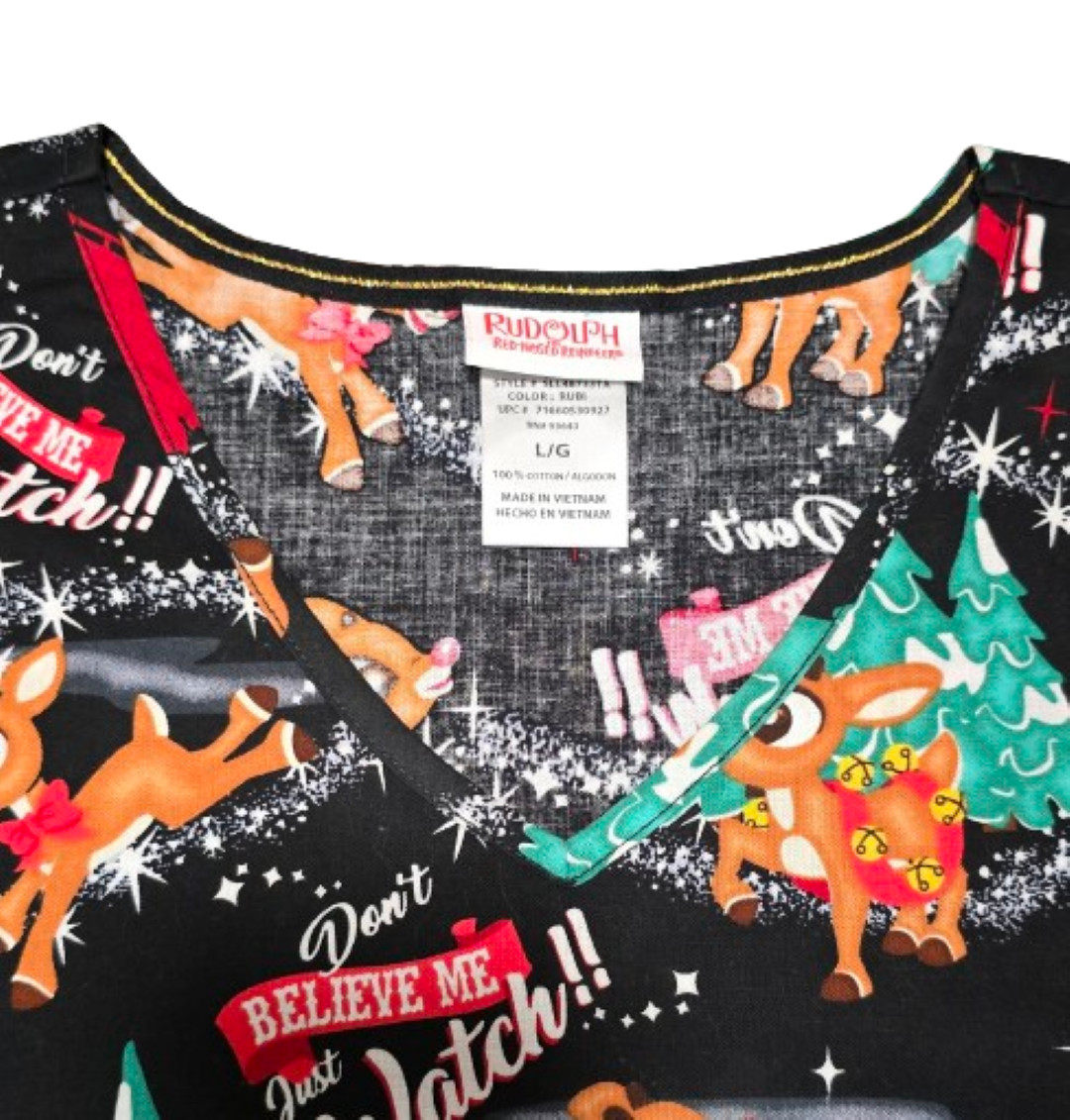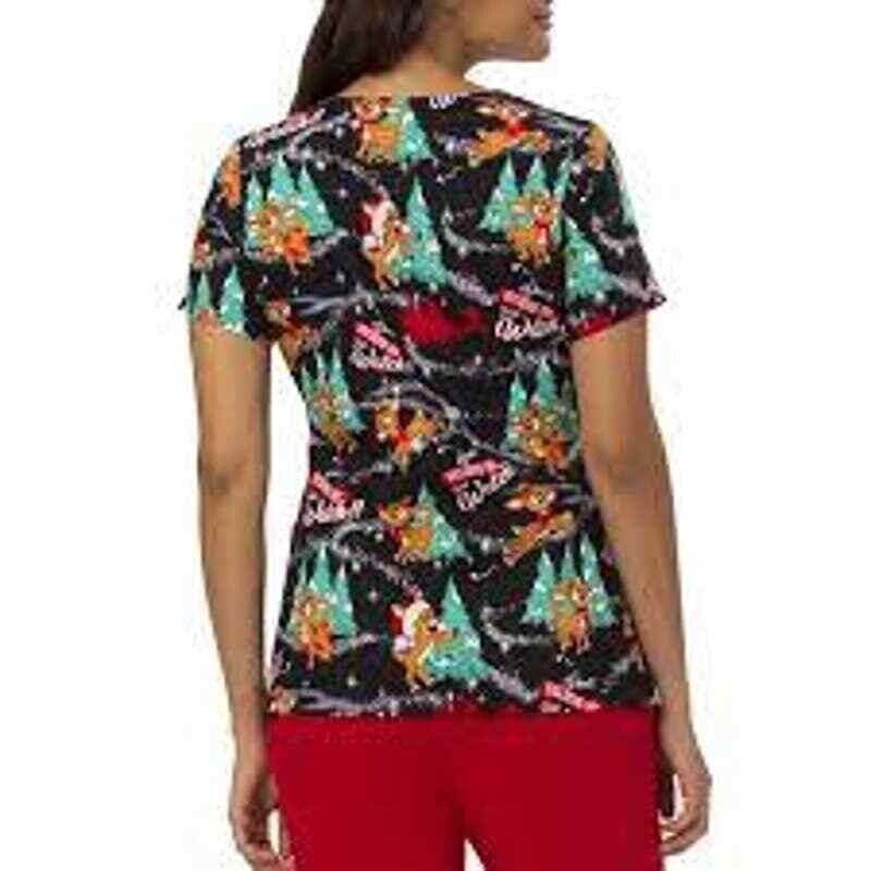 как выглядит Rudolph The Red Nosed Reindeer Scrub V-Neck Top Large фото