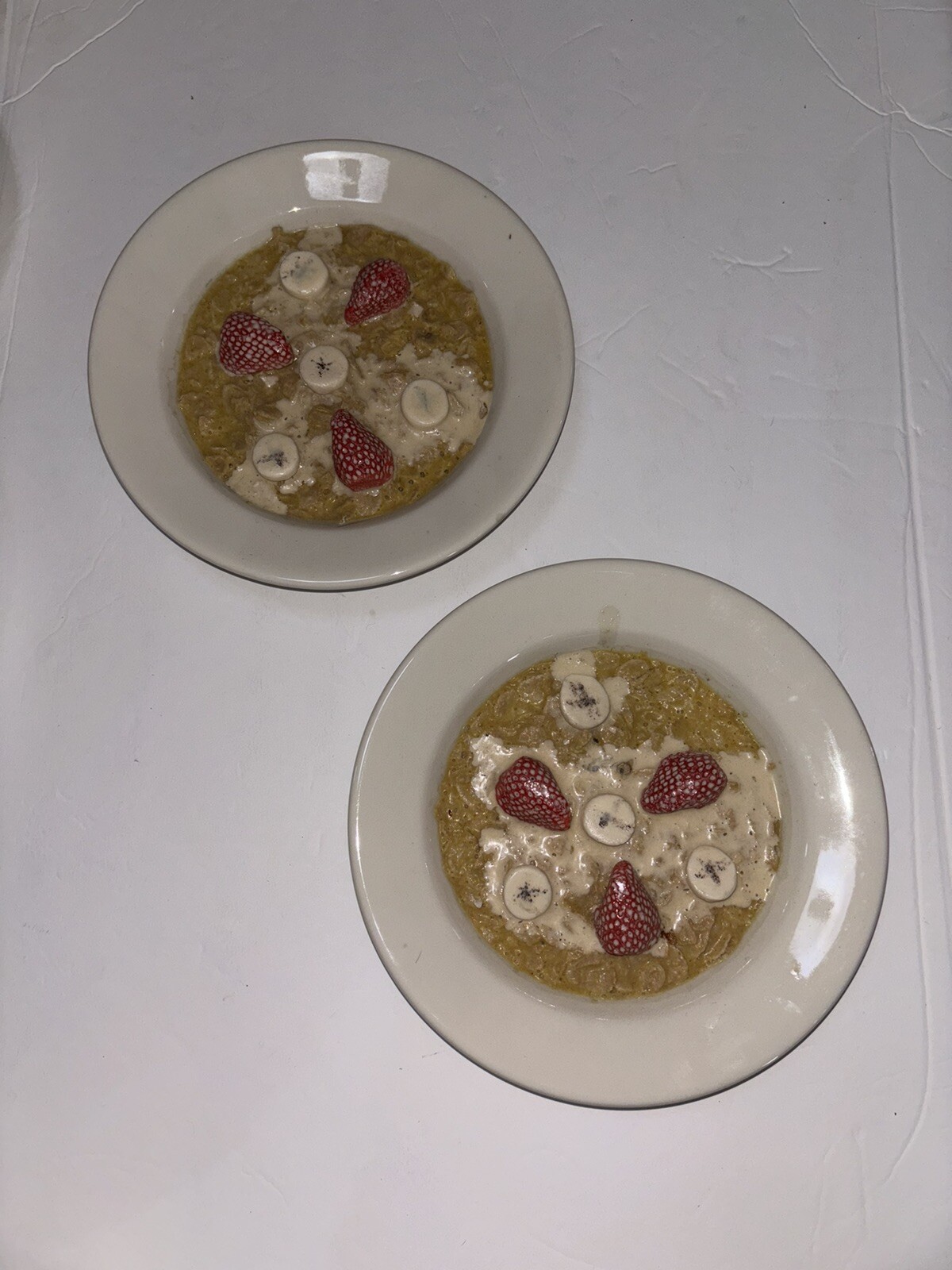 Cereal With Fruit Two Bowls Display Fake Food Prop Realistic Look Ceramic Bowls