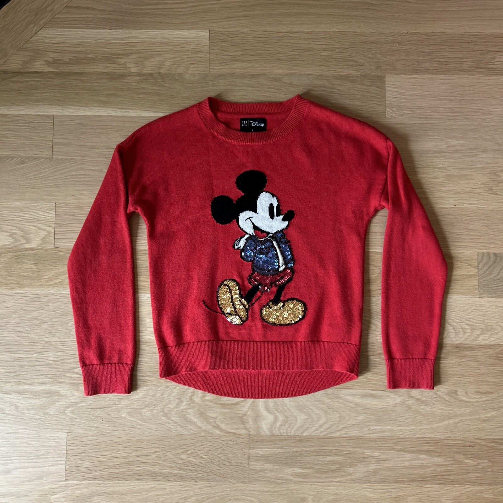 Disney X Gap Girls limited edition Mickey Mouse sweater red sequins cotton L 10