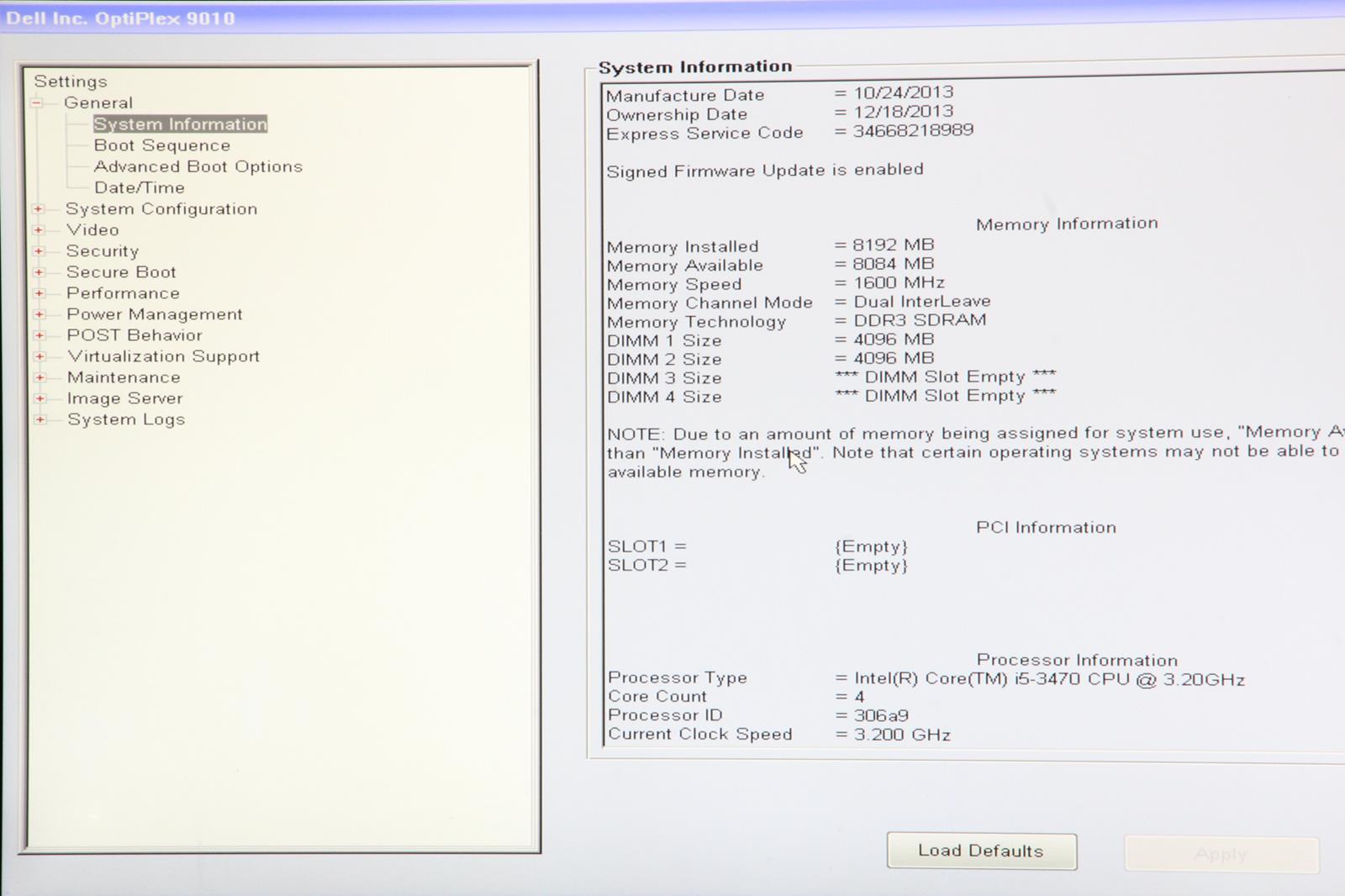 DEFECT: W/ I5-3470 3.20GHz, 8GB RAM.