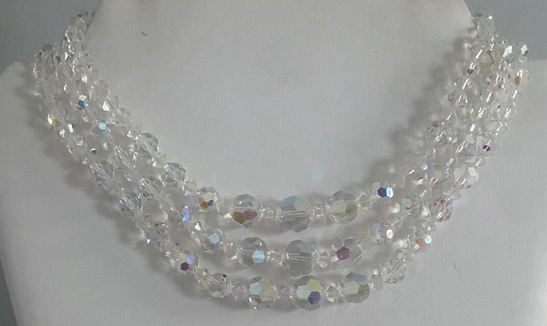 Beautiful Vintage Aurora Borealis AB Crystal Multi Strand Necklace Choker 15.50