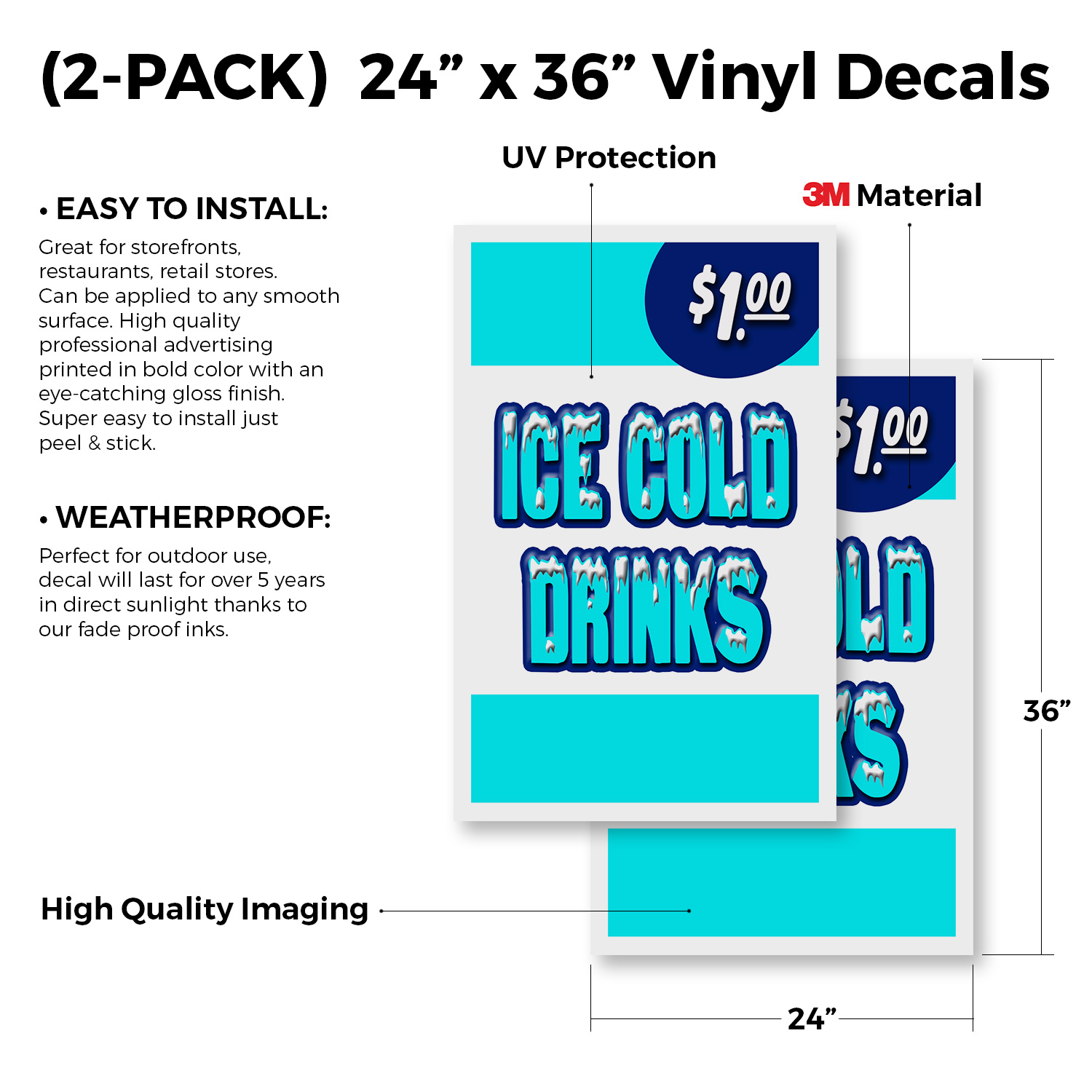 Ice Cold Drinks 1 24 x 36 2 Pack Of Store Sign Plastic Or Decal