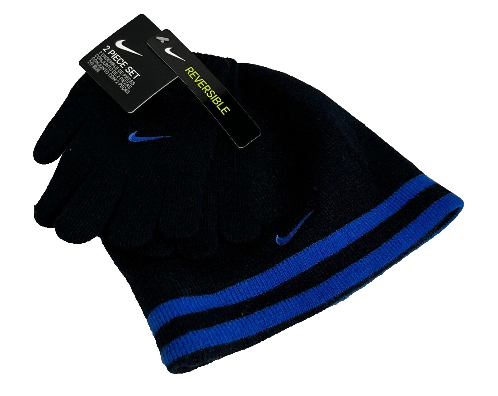 Nike Hat Beanie Gloves Set Knit Logo 2Pcs Authentic Boys Winter
