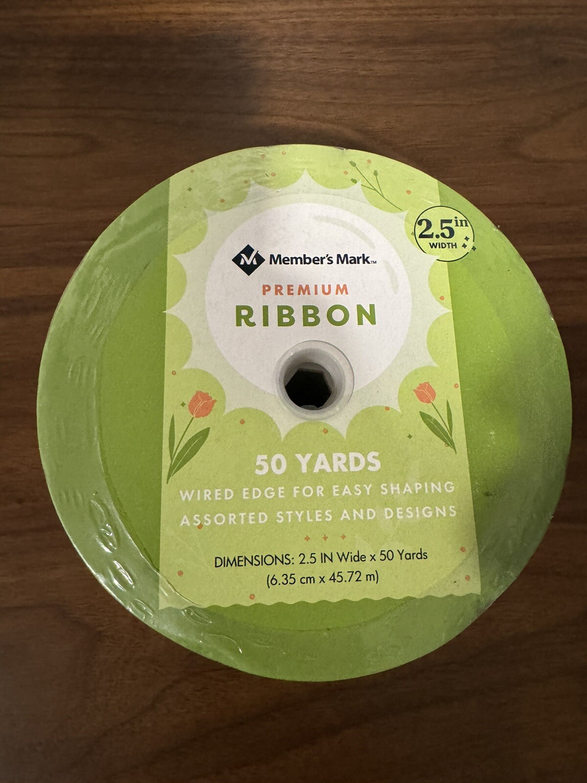 Member's Mark Premium Wired Ribbon 50 Yards 2.5in Width, Hello Spring