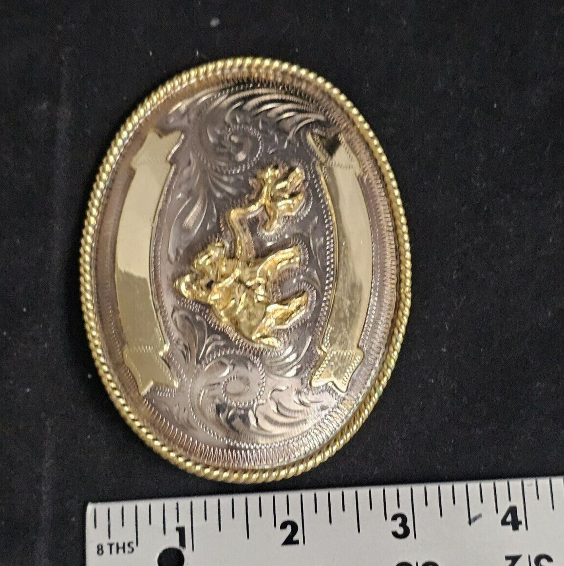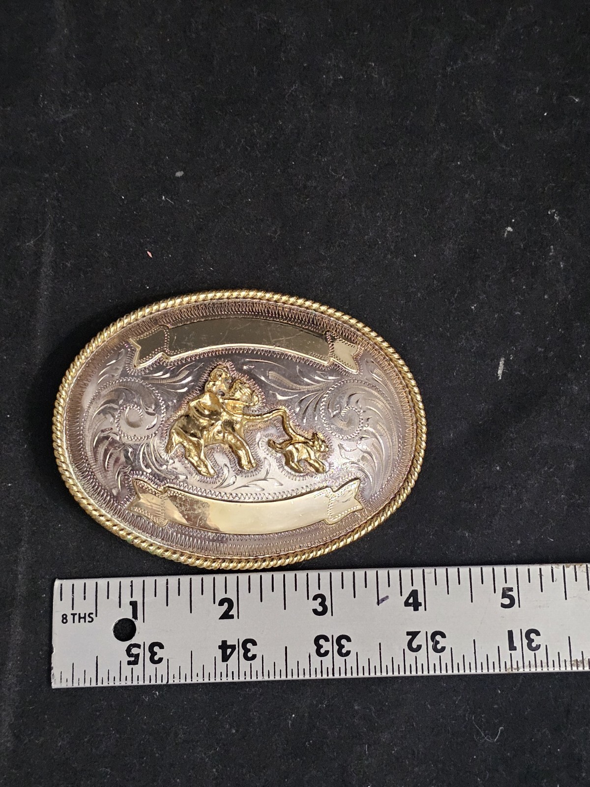 как выглядит VINTAGE MEXICO ALPACA BRASS HORSE CALF ROPING WESTERN RODEO BELT BUCKLE фото