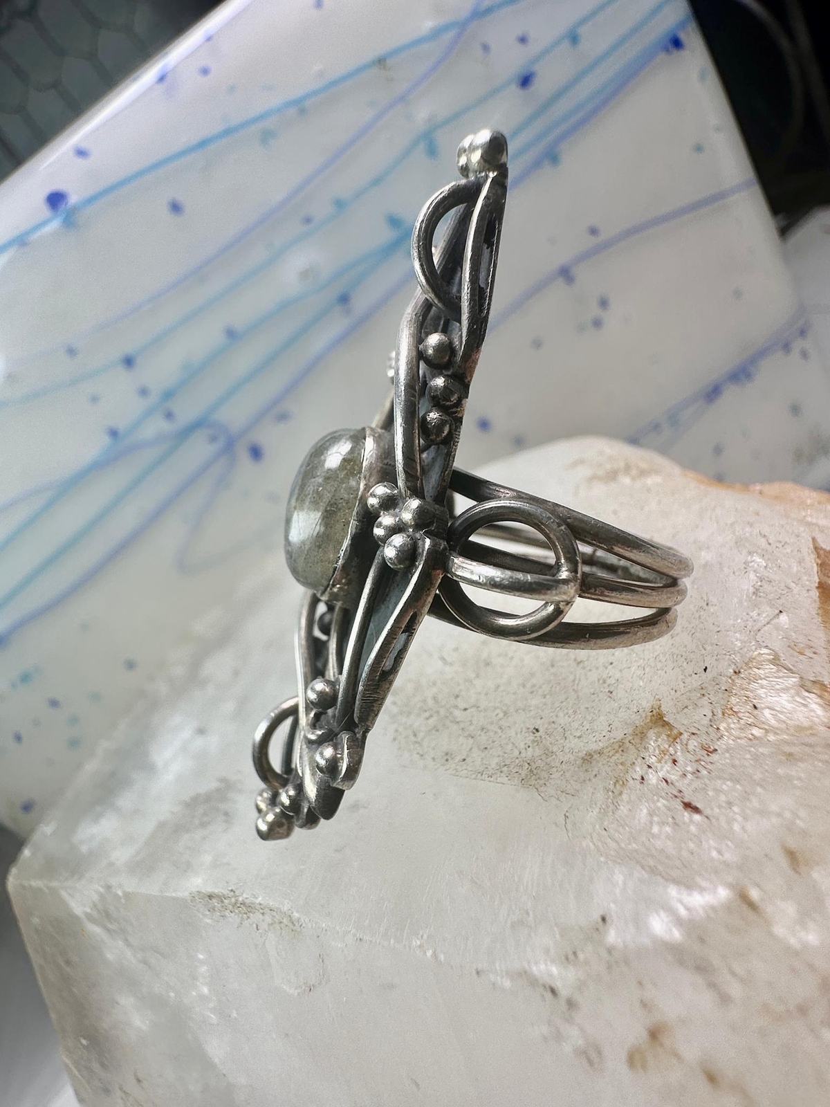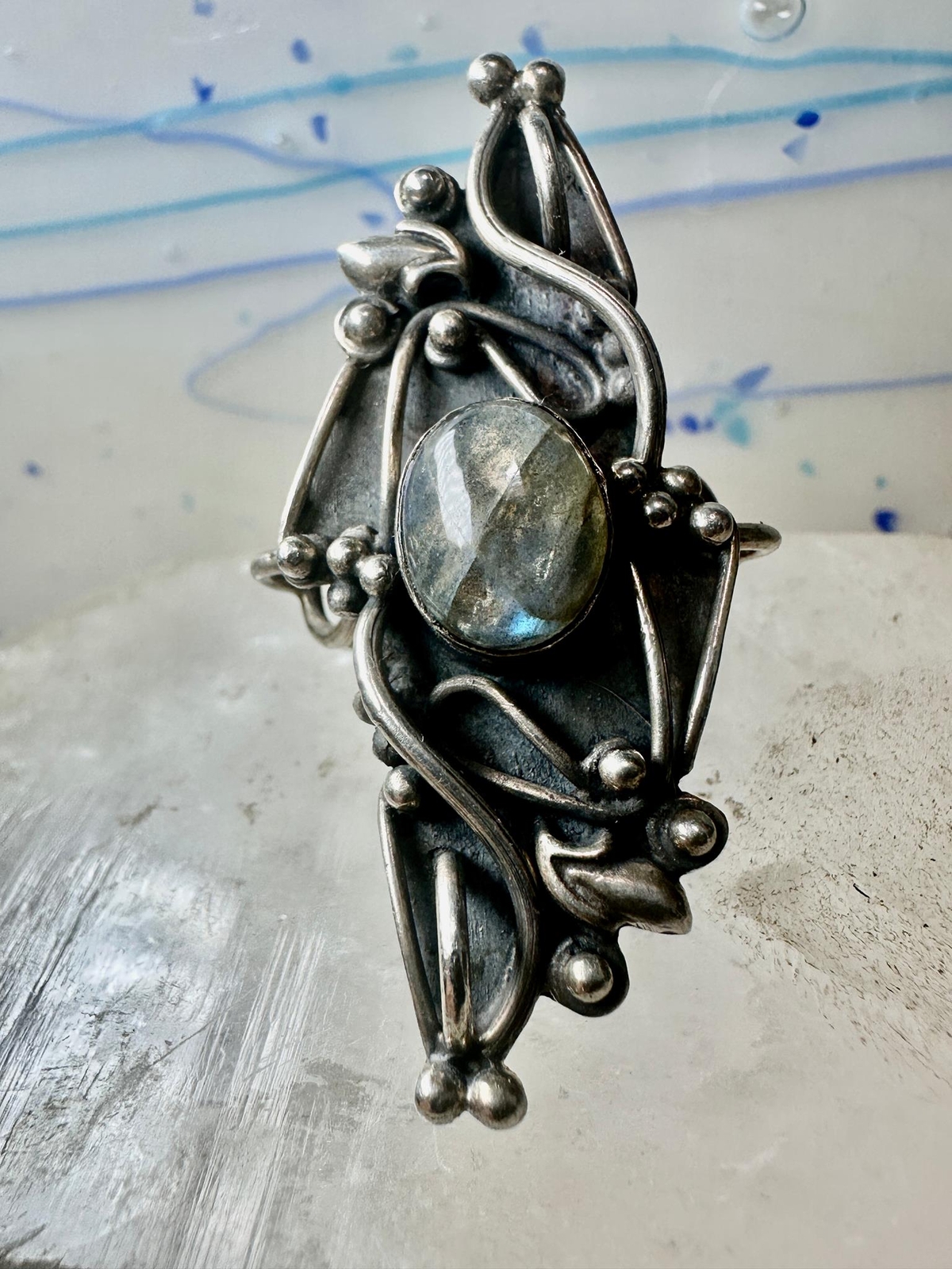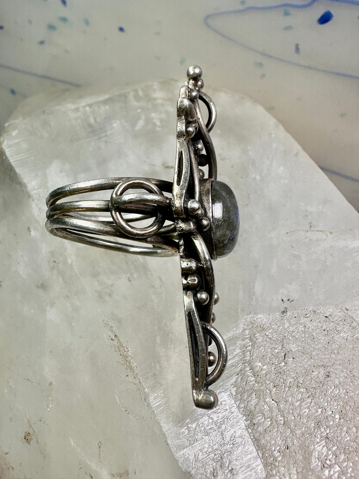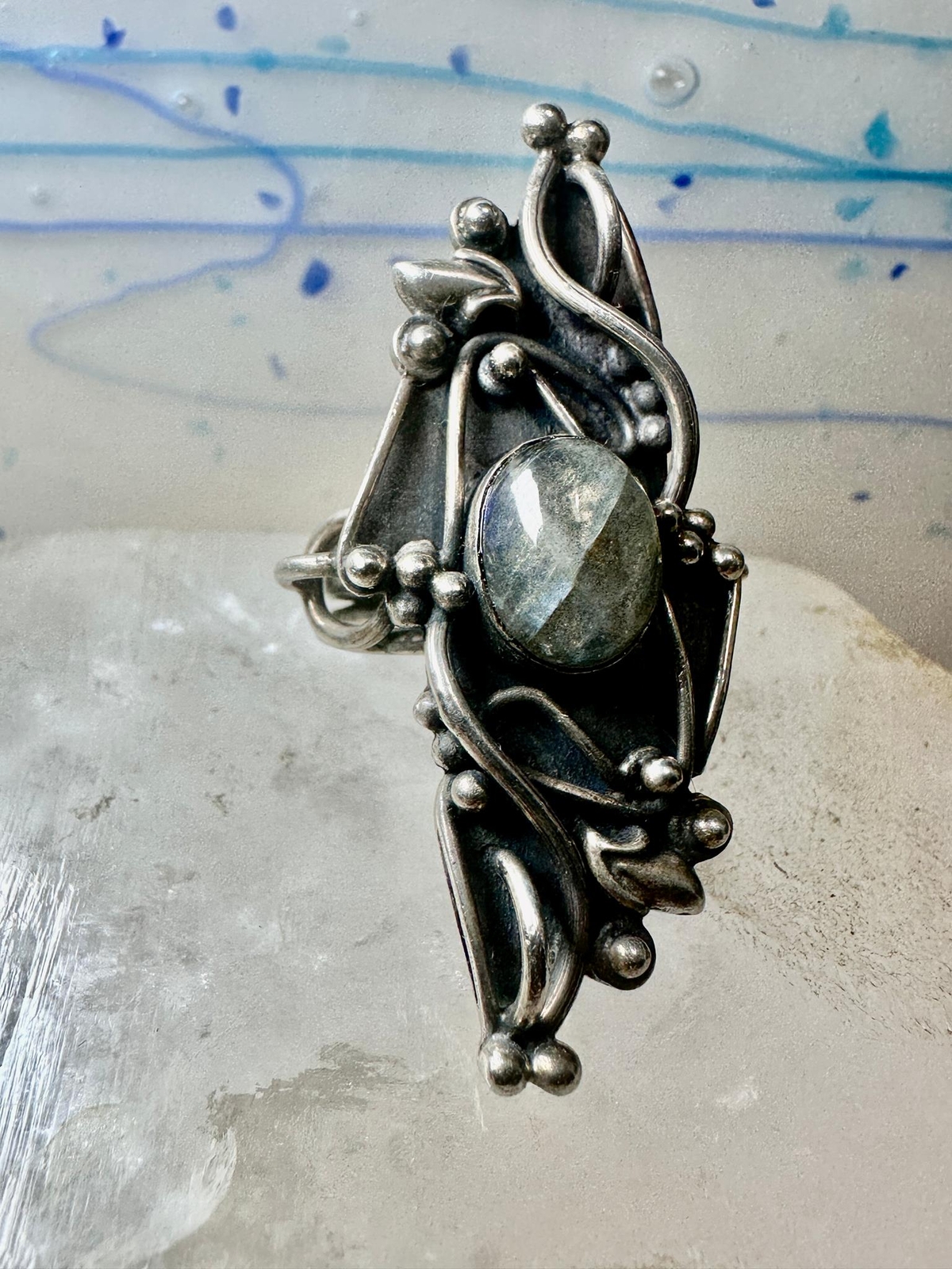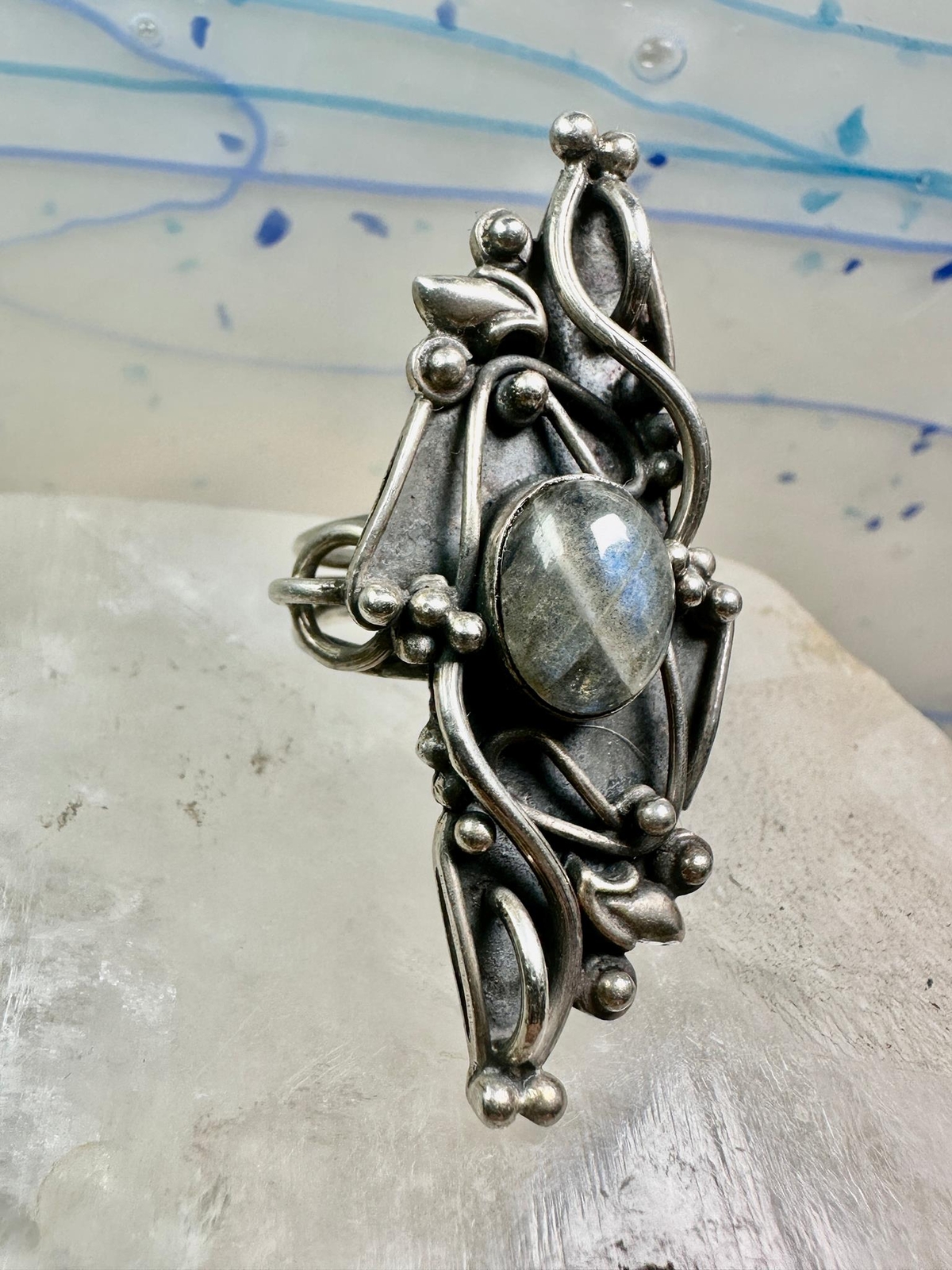 Long Labradorite ring size 6.75 sterling silver women