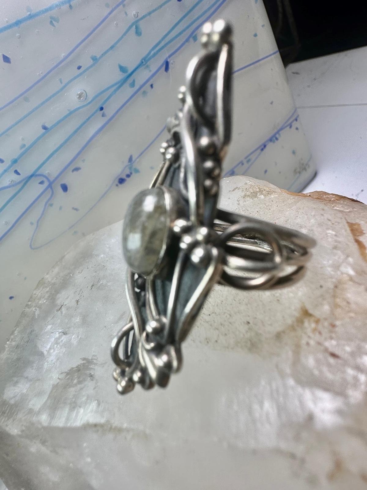 как выглядит Long Labradorite ring size 6.75 sterling silver women фото