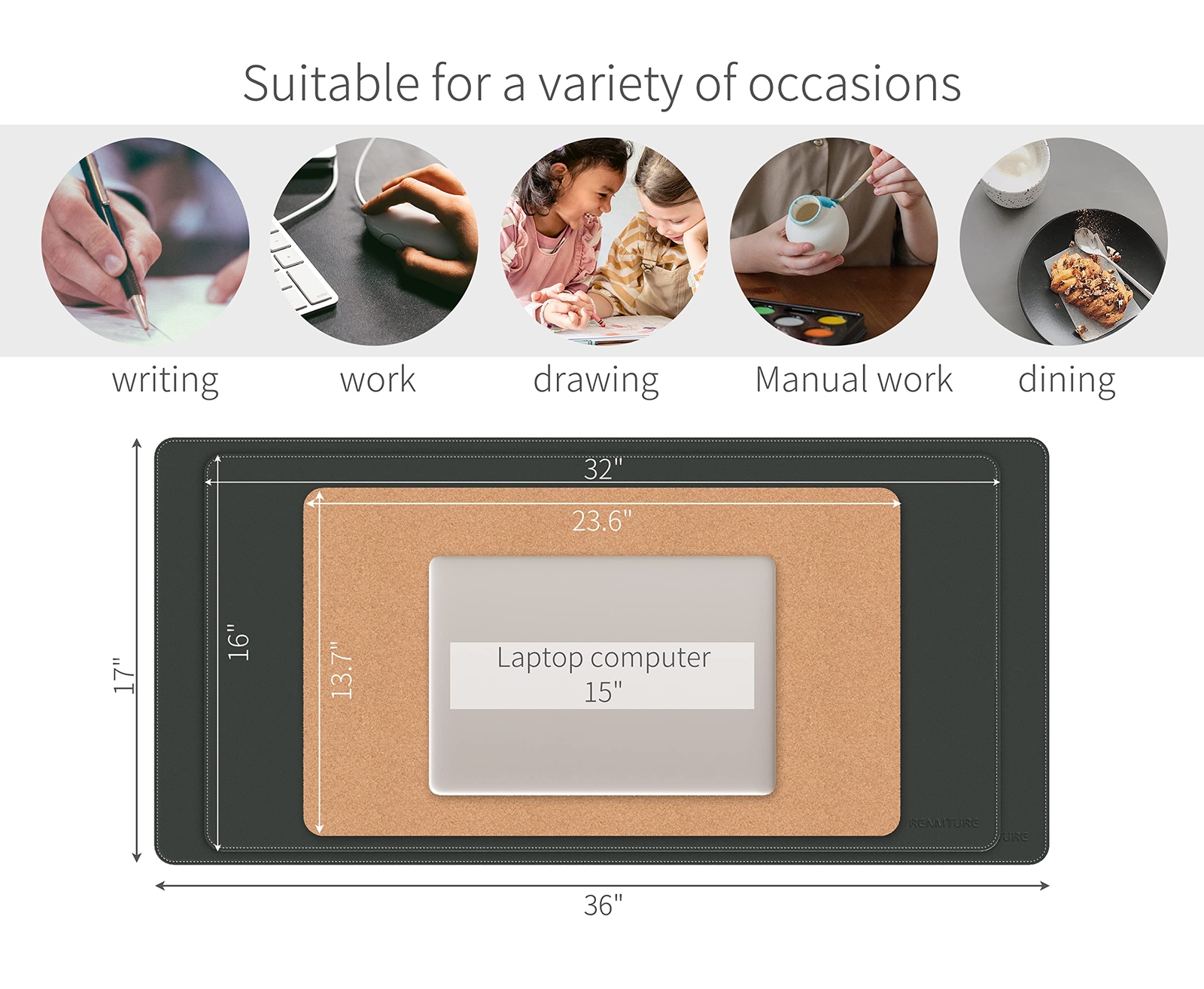 Dual-Sided Desk Pad Natural Cork PU Leather Large Mouse mats for Office and...