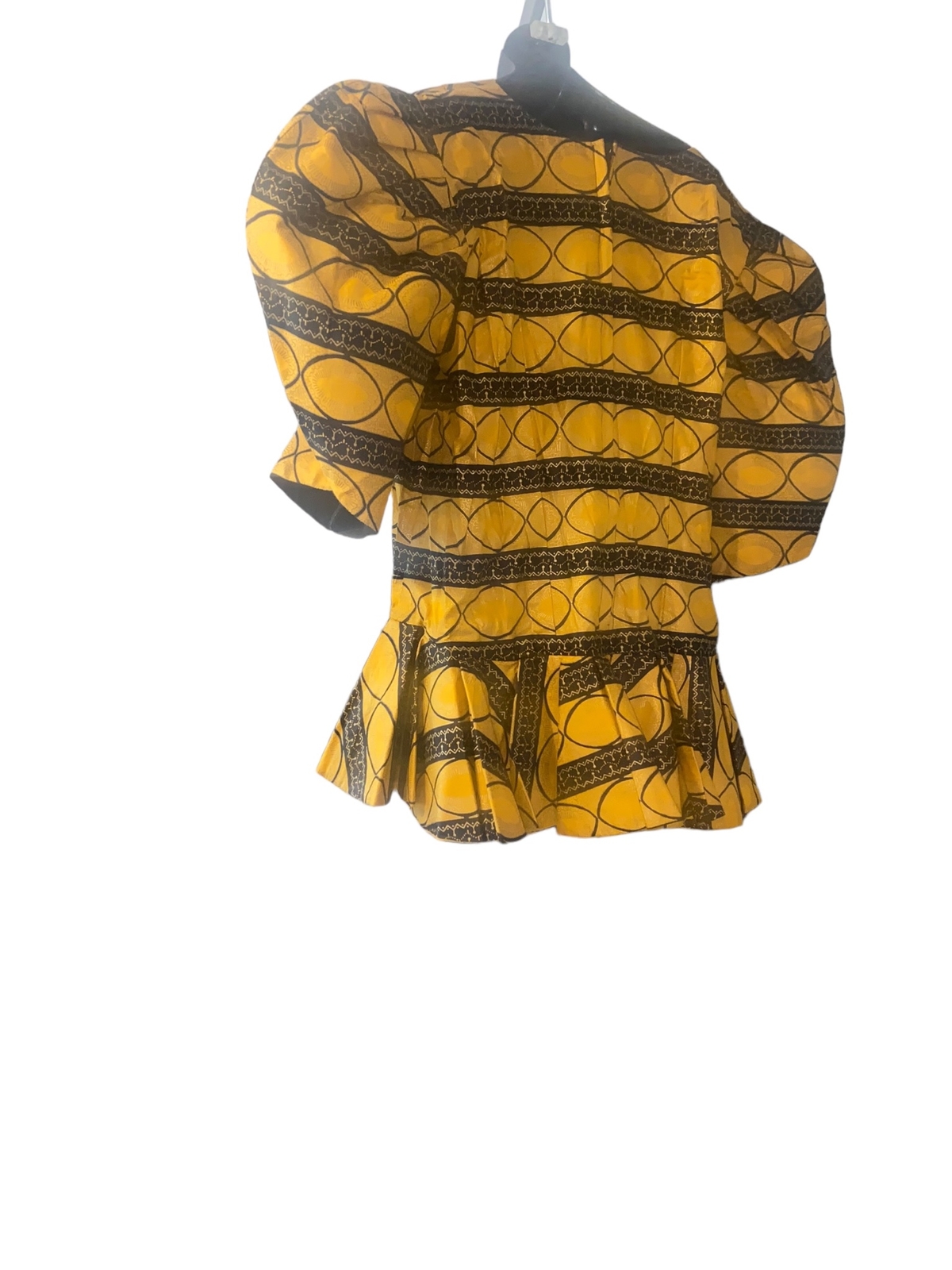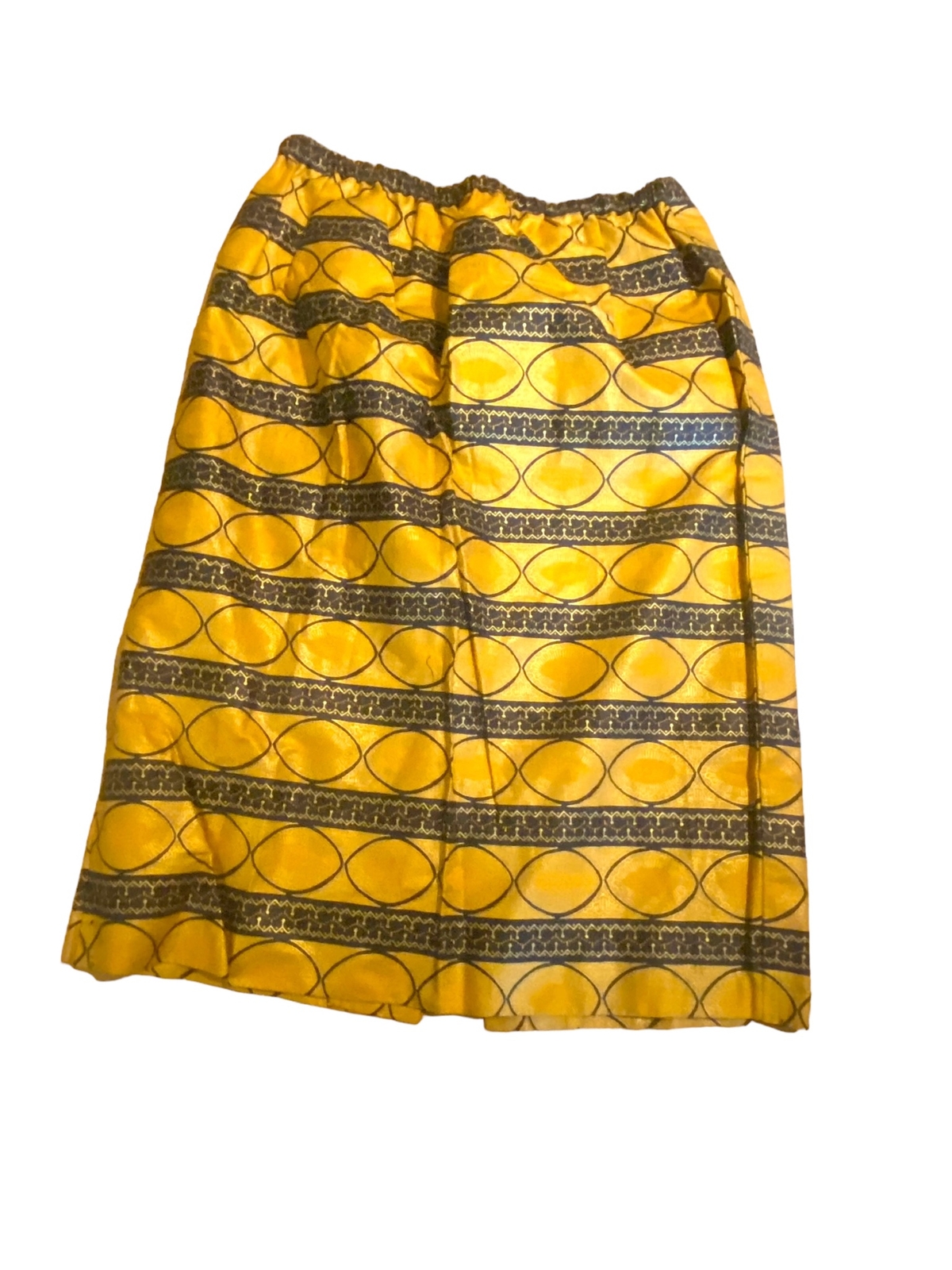 как выглядит African Womens 2PC Ankara Embroidered Blouse Elastic Waist Skirt Set Blk/Gld фото