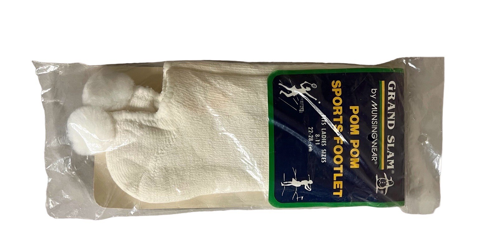 как выглядит Vintage Pom Pom Sport Socks White One Size Fits 8-11 Cotton Nylon NOS 1 Pair фото