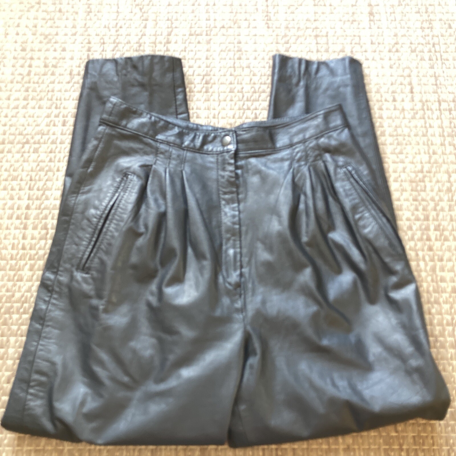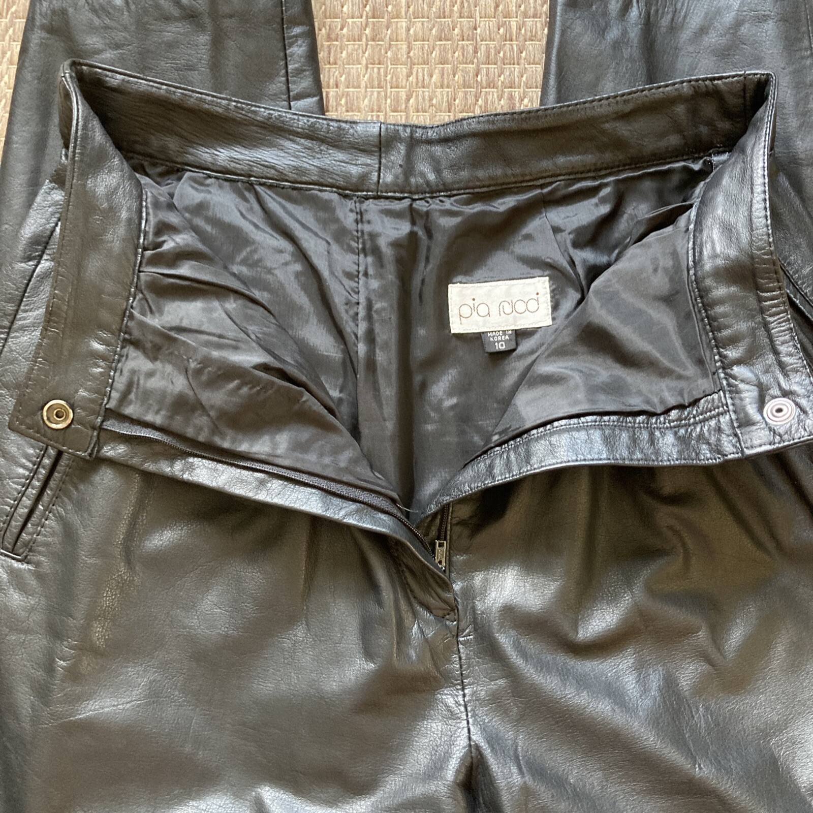 как выглядит Vintage PIA RUCCI Black 100 Leather Pants - Size 10 Lined Pleated Pocket 28x27 фото