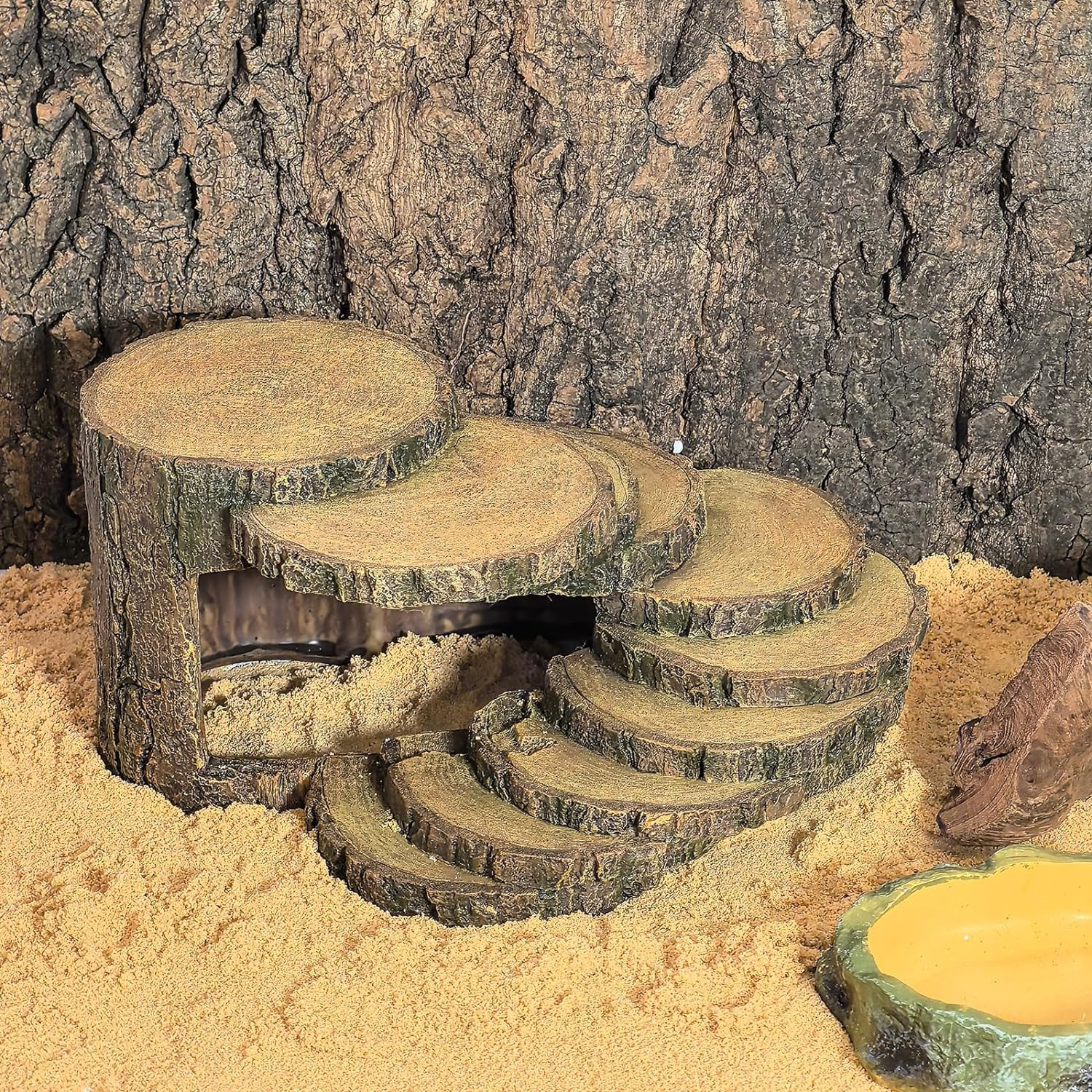 Reptile Hide Bearded Dragon Tank Accessories Snake Hideouts Stump Cave Habitat D