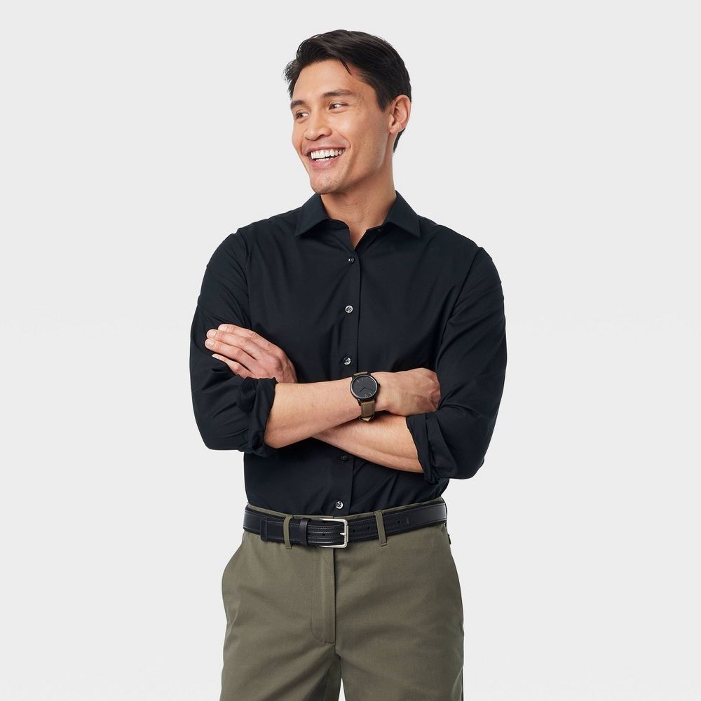 Goodfellow Co Men's Performance Button-Down Shirt Tie Collared Long Sleeve