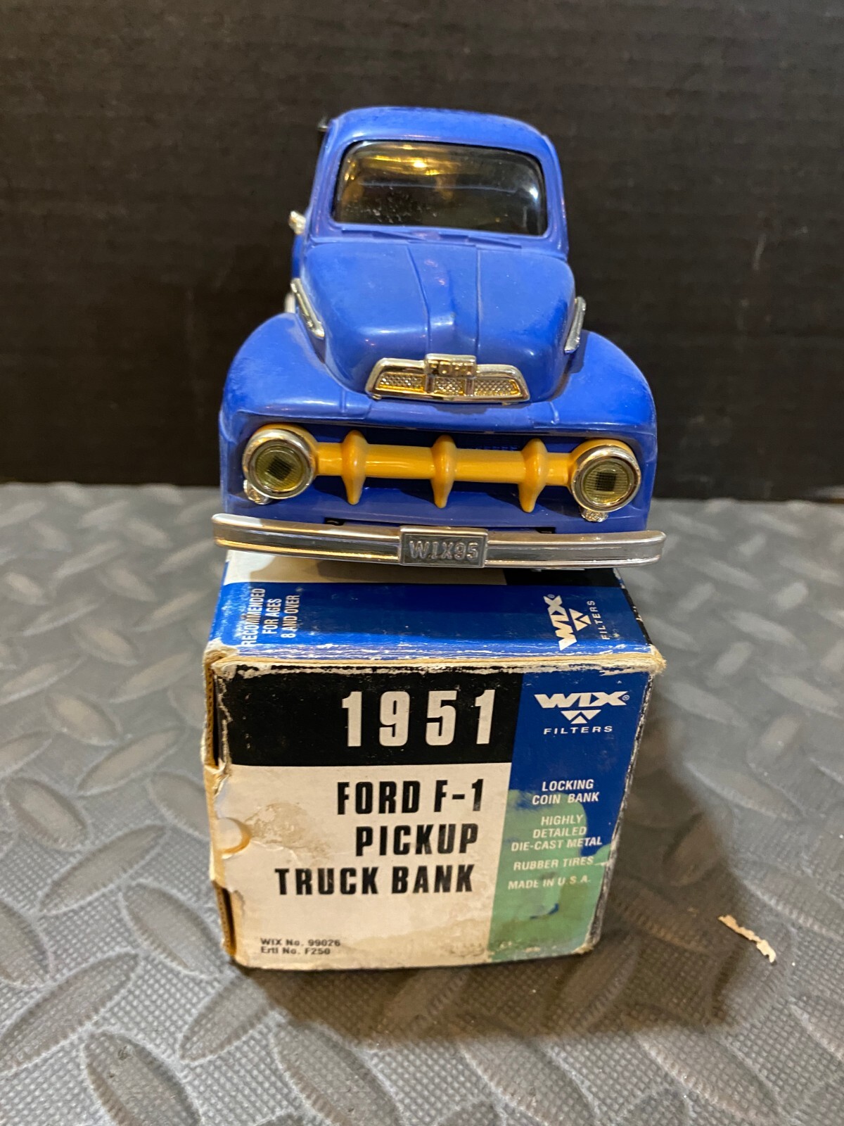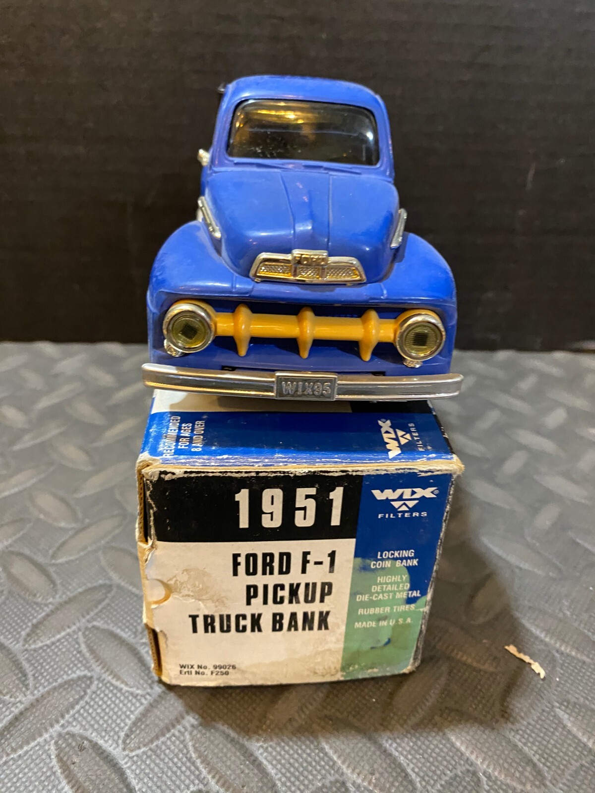 1:25 ERTL VINTAGE BANK 1951 FORD F-1 TRUCK WIX FILTERS WITH EXTRA TIRES BAD BOX