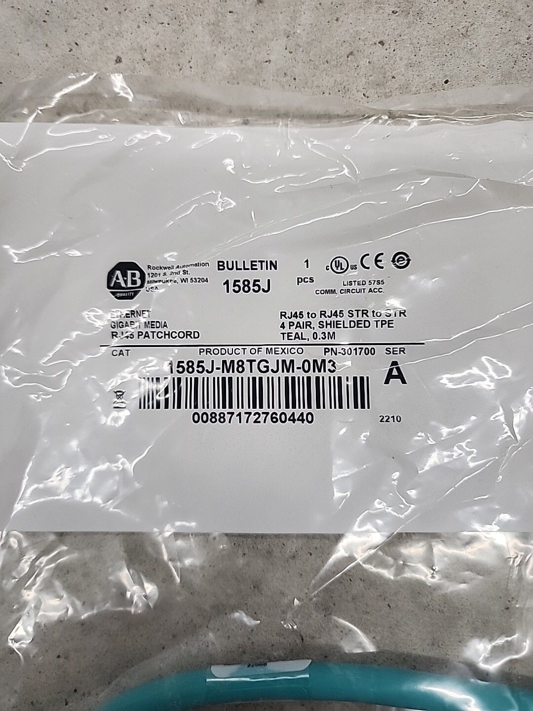 NEW ALLEN BRADLEY 1585J-M8CBJM-0M3 /A , 0.3M ETHERNET CABLE SHIELDED