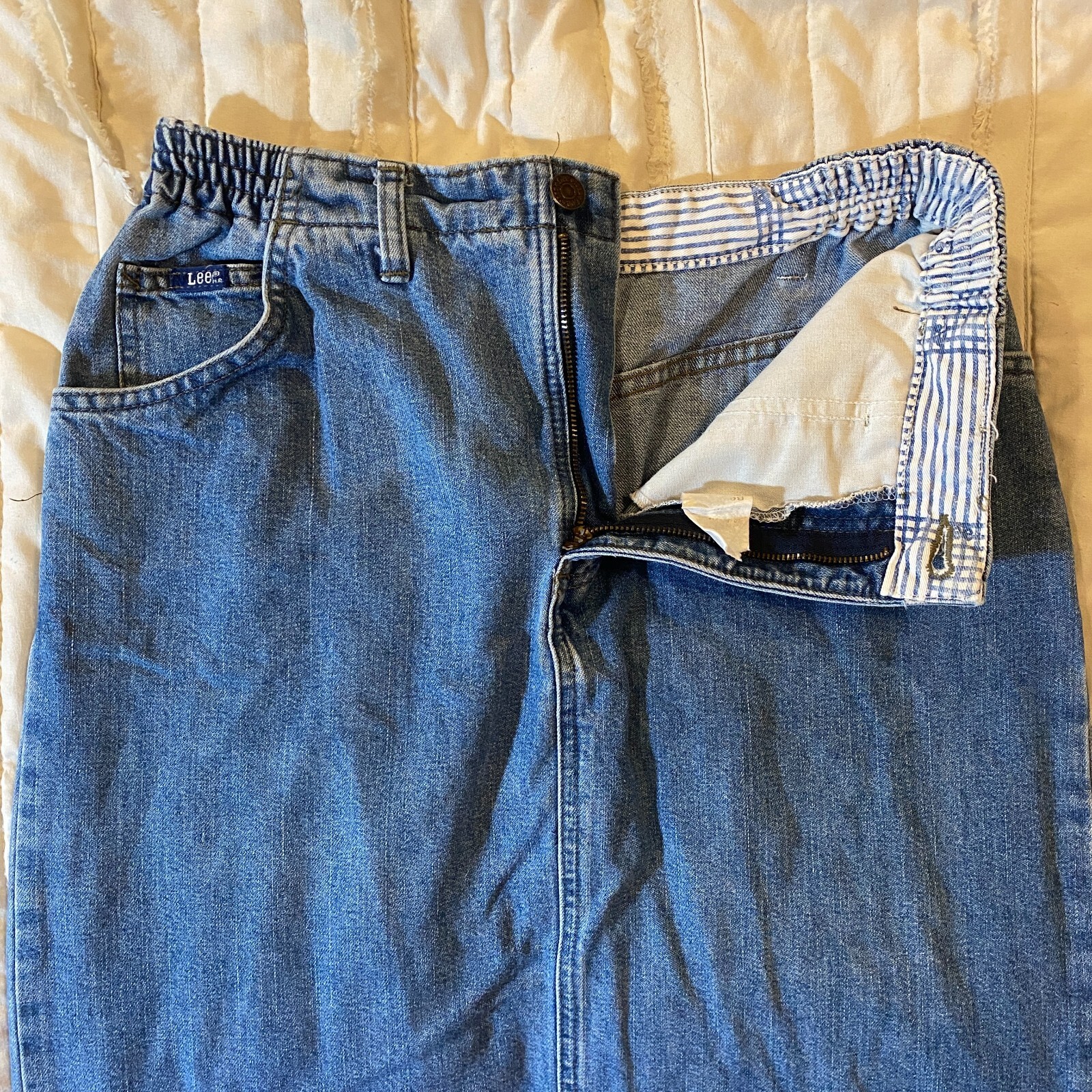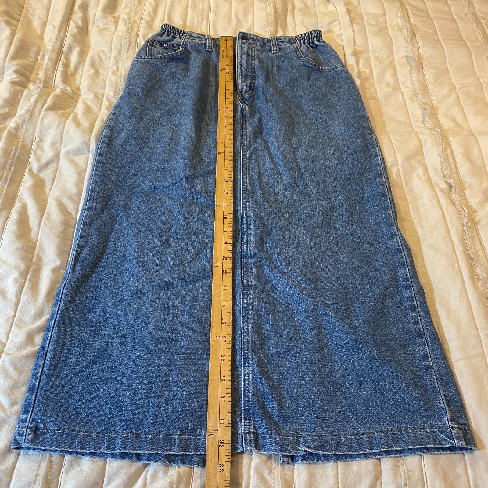 Vintage Lee Skirt Womens 28 Light Wash Denim Pencil Midi Modest Made in USA 90s