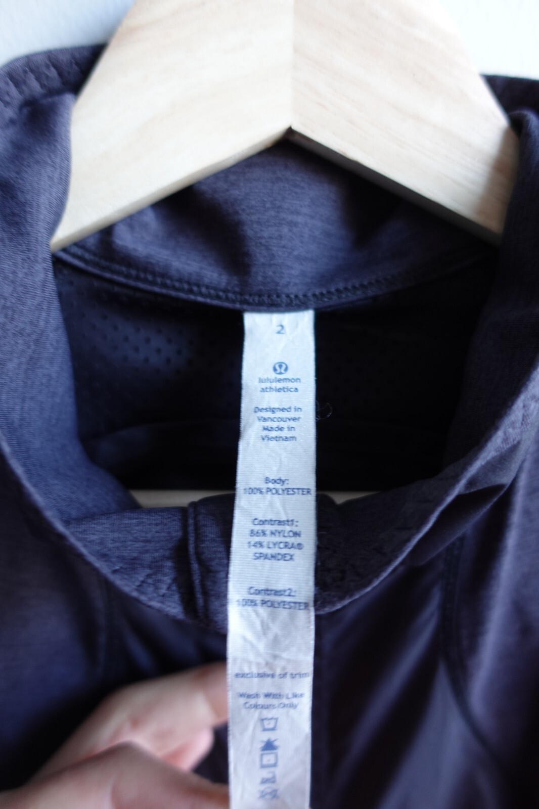 Lululemon Athletica Running Full Zip Black Gray Jacket Size 2 Breathable
