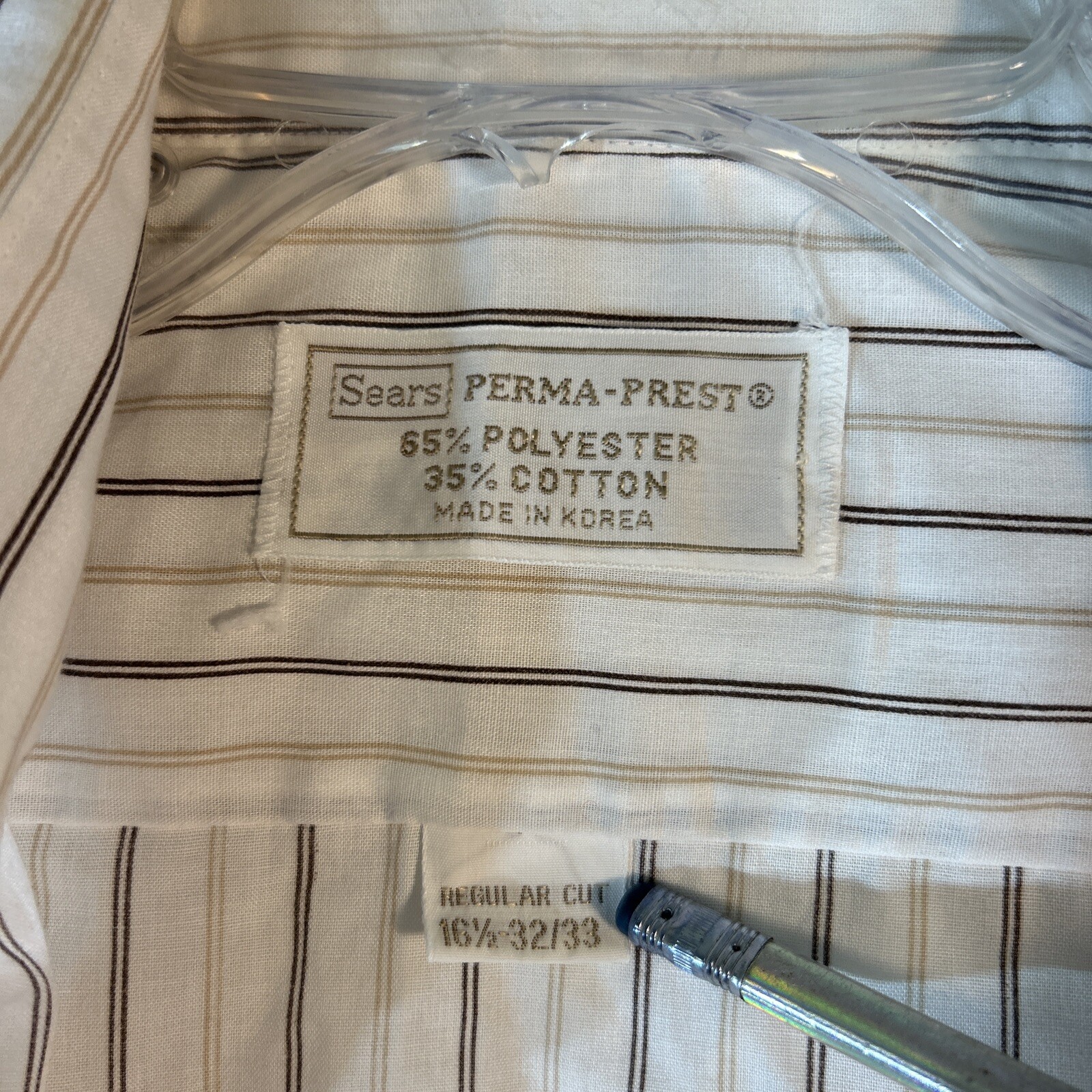 Sears Perma-Prest Long Sleeve Full Button Shirt Size 16 1/2 - 32/33 Vintage