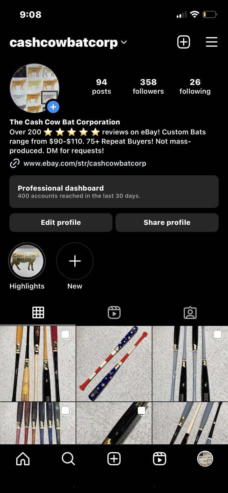 Maple Wood Baseball Bat 32.5in. Flared / No Knob. Full Charcoal / Black Detail