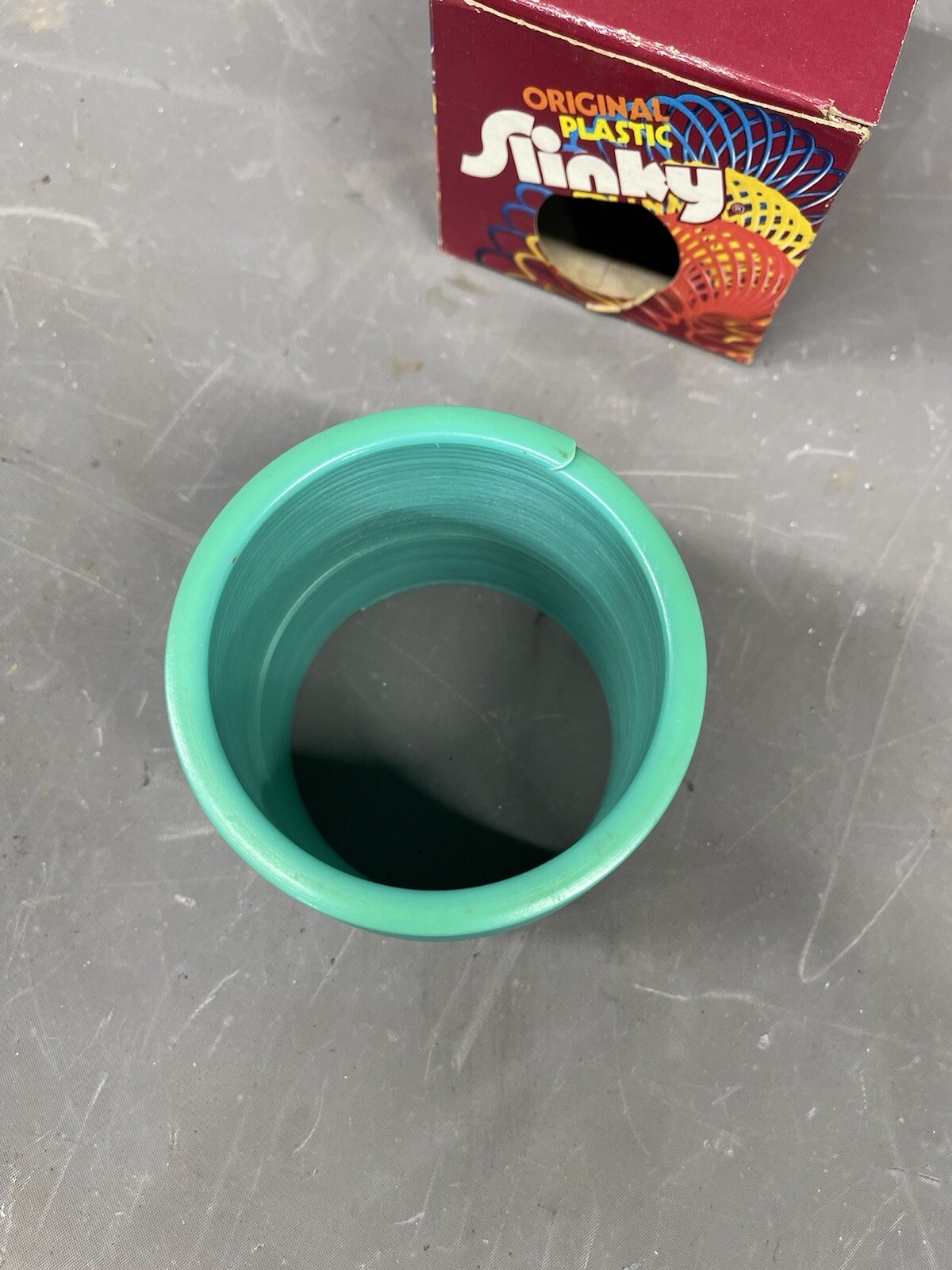 Vintage Slinky Plastic Spring Just Play Box Novelty Authentic Accordion Green OE