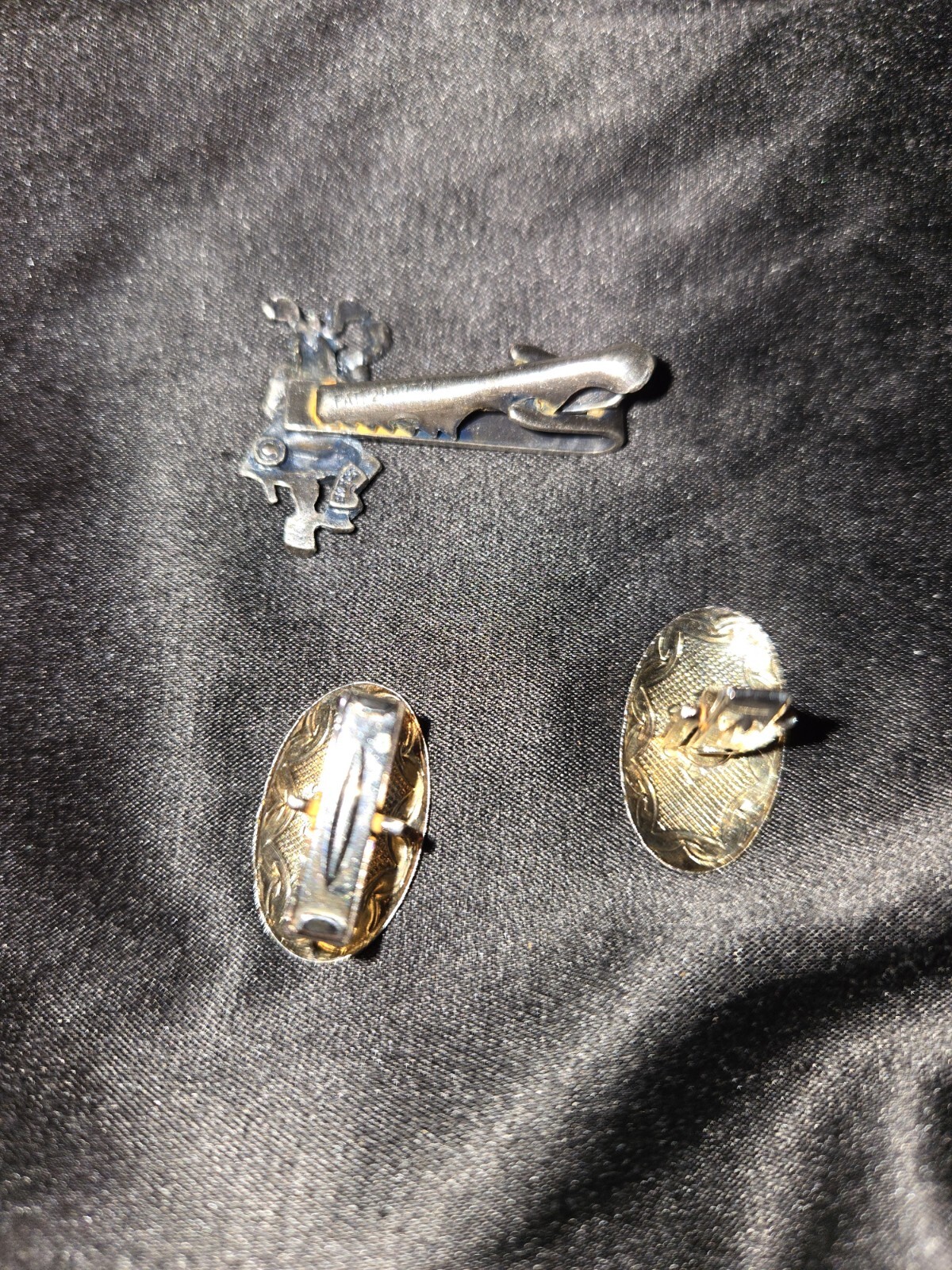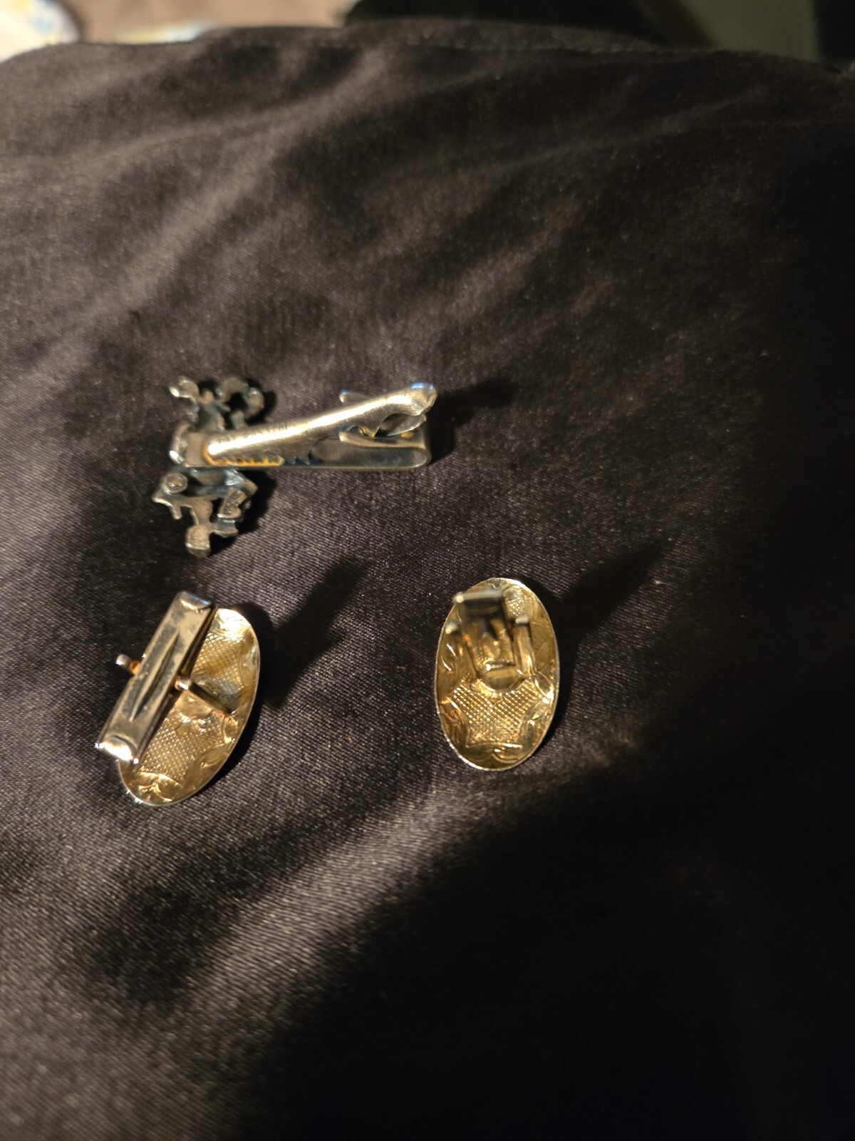 как выглядит Vintage Mardi Gras Man Tie Clip And Fleur De Lis Cufflinks фото