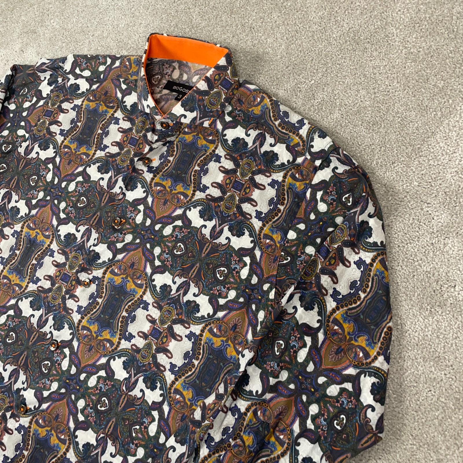 как выглядит BOGOSSE Dress Shirt Mens Size 3 Medium Paisley Design Long Sleeve Designer фото