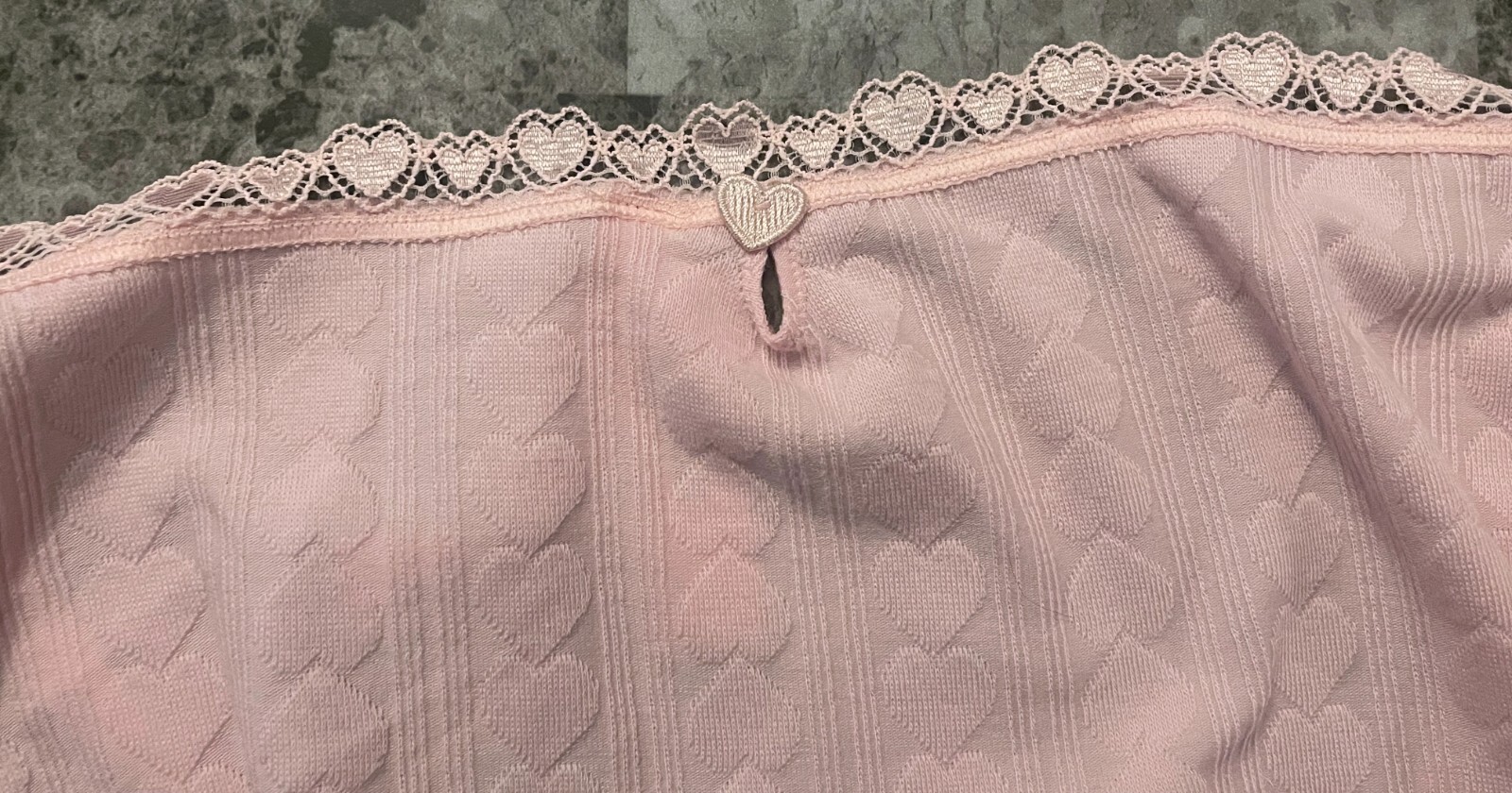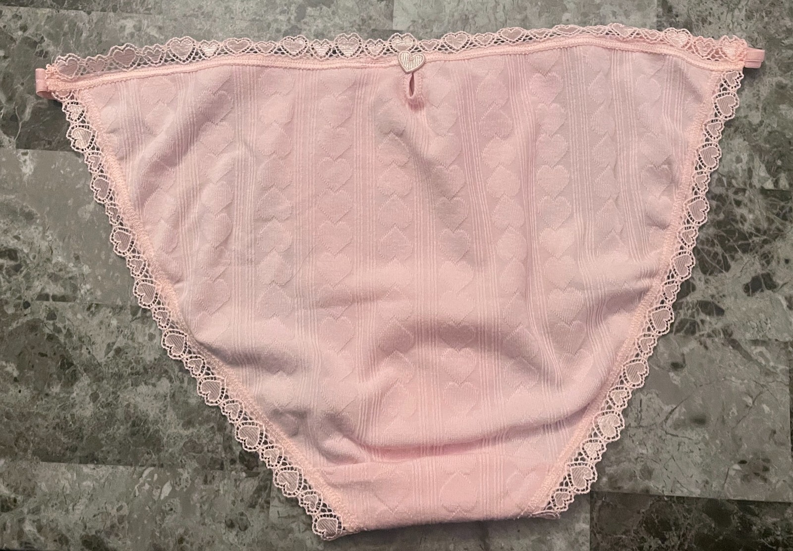 как выглядит NWT VICTORIAS SECRET PINK HEART LACE PATCH DOUBLE STRAPPY STRING BIKINI PANTIES фото