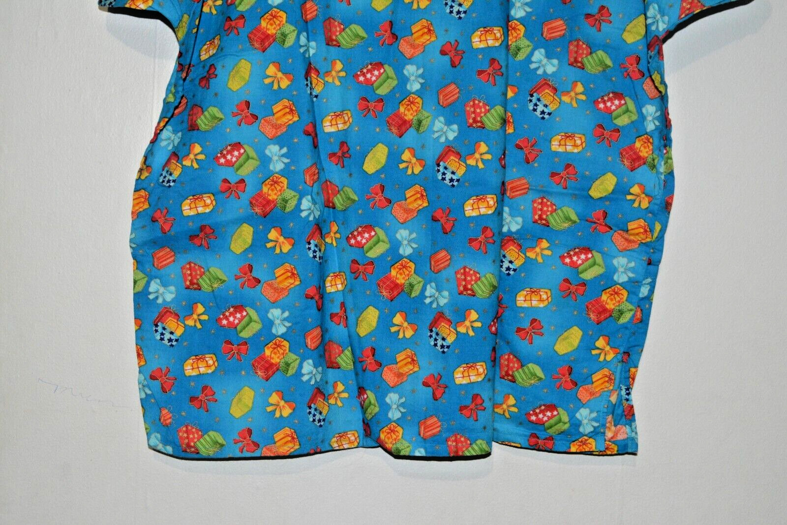 Women s Extra Large Blue Present Gift Bow Party Celebration Scrub Top