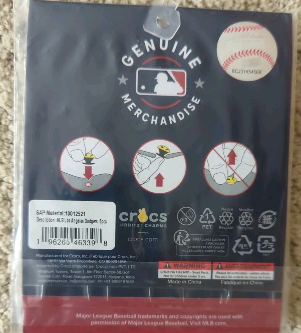 Dodgers Crocs Jibbitz Pack - 5 piece Shoe Charm Bundle an LA Jibbitz