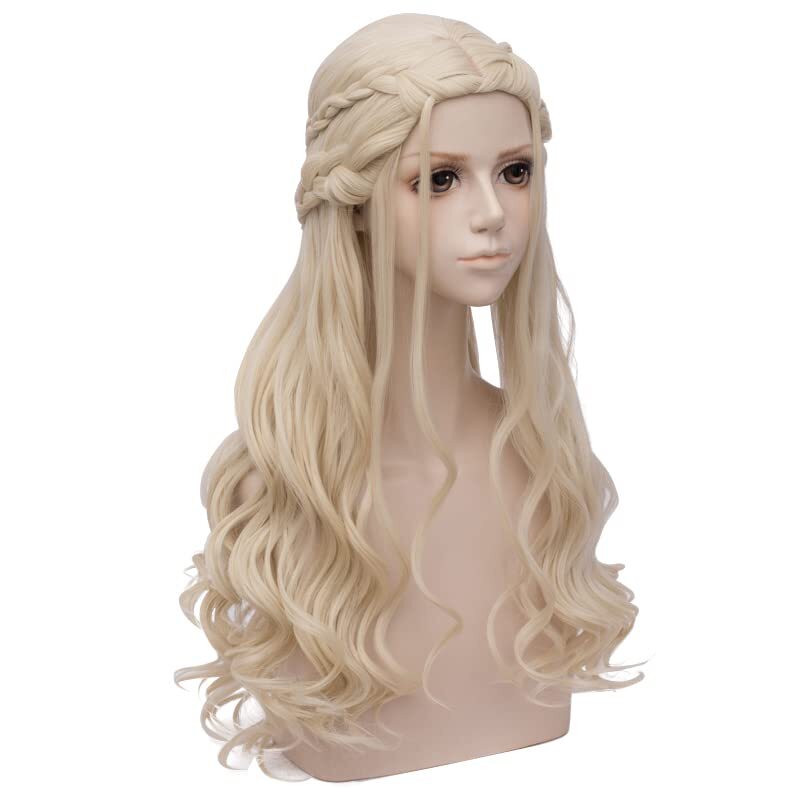 Long Blonde Braid Wig Women Halloween Costume Cosplay Wig Cap Curly Braid B