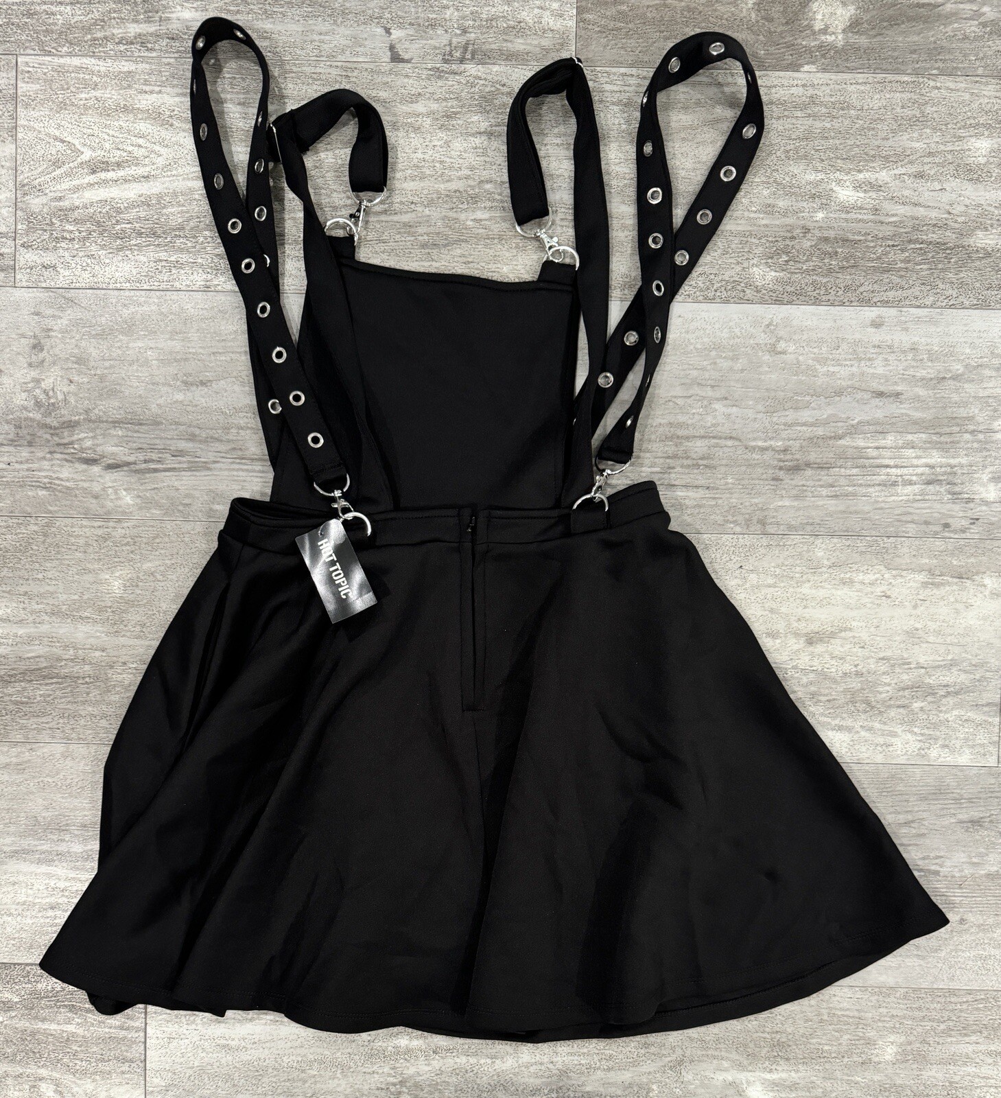 Hot Topic Black Grommet Suspender Skirtall Womens Small NEW