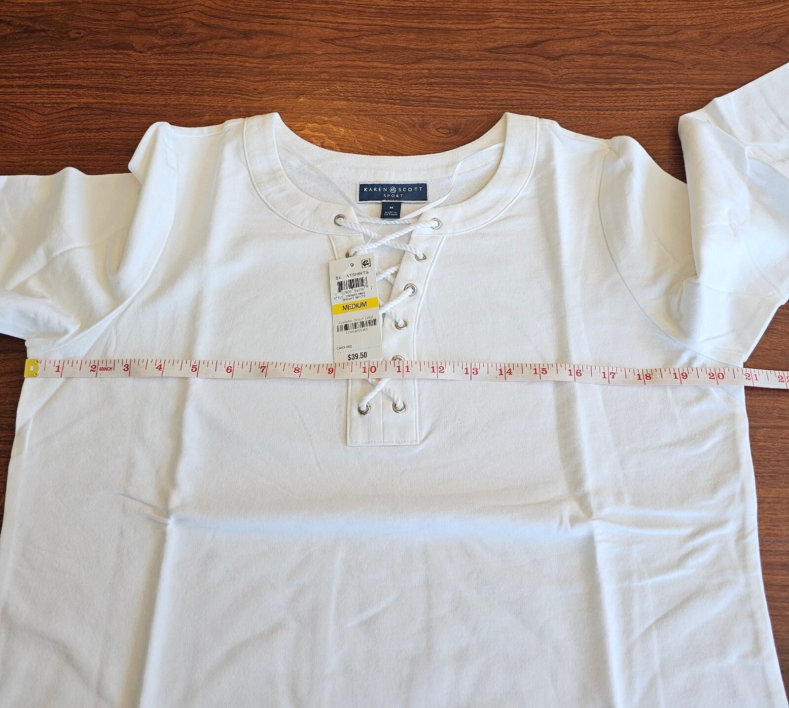 Women's Size Medium Karen Scott Sport Lace-up Top In White-NWT
