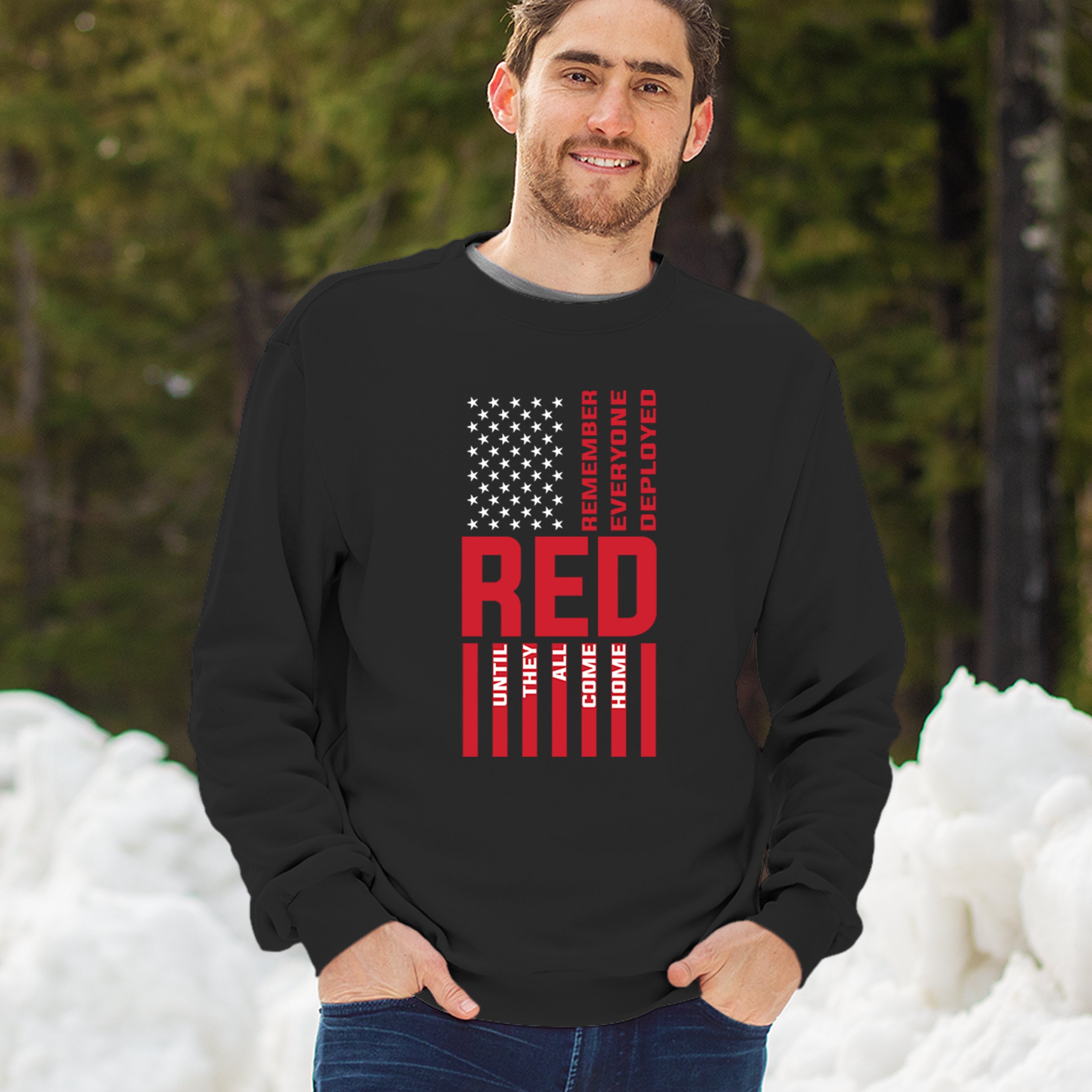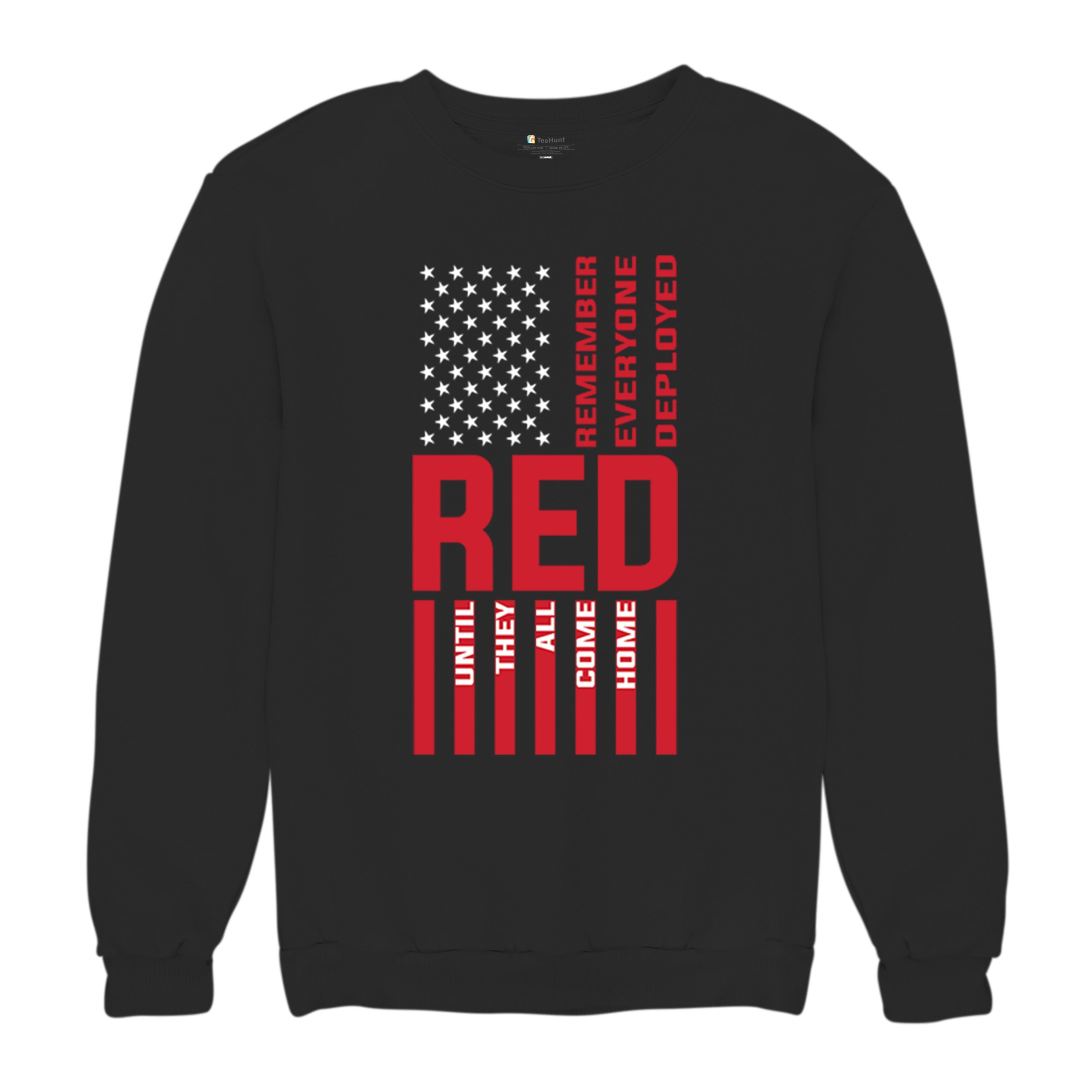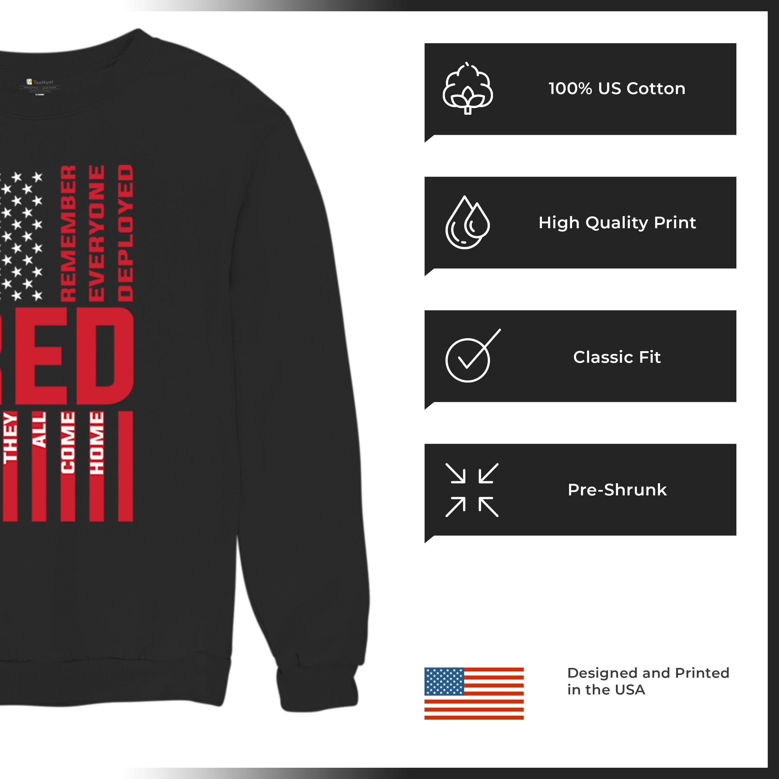 Remember Everyone Deployed Sweatshirt RED Friday Military US Flag USA Crewneck