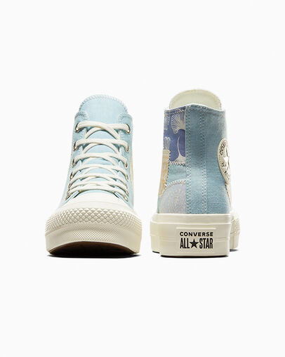 Women Converse Chuck Taylor AS Lift Denim Patchwork Hi, A06821C Multi Sizes Blue