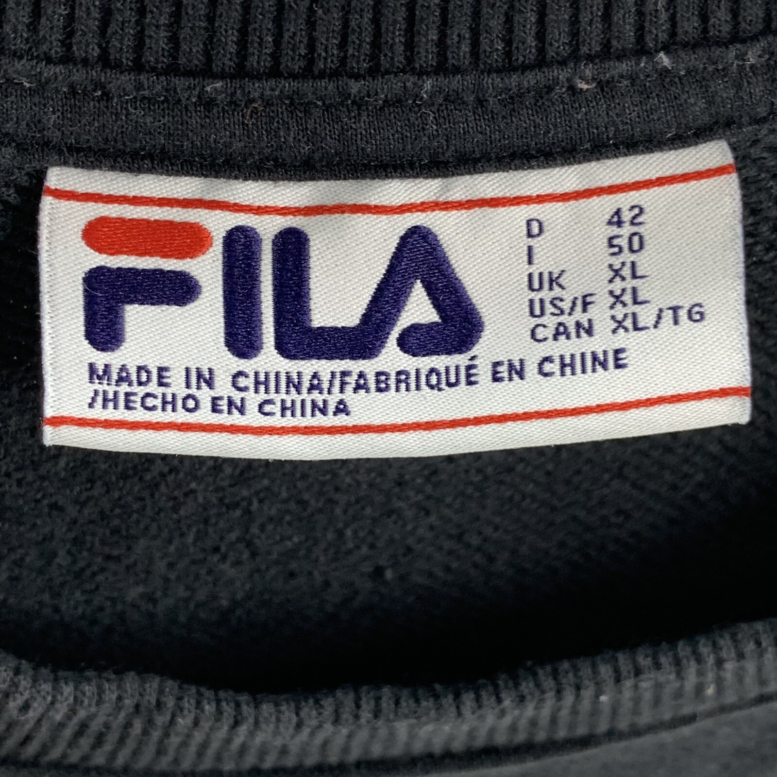 как выглядит FILA BLACK SpellOut Big Logo Mens Sweatshirt Sz Large XL Classic фото