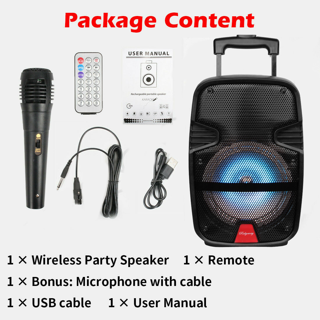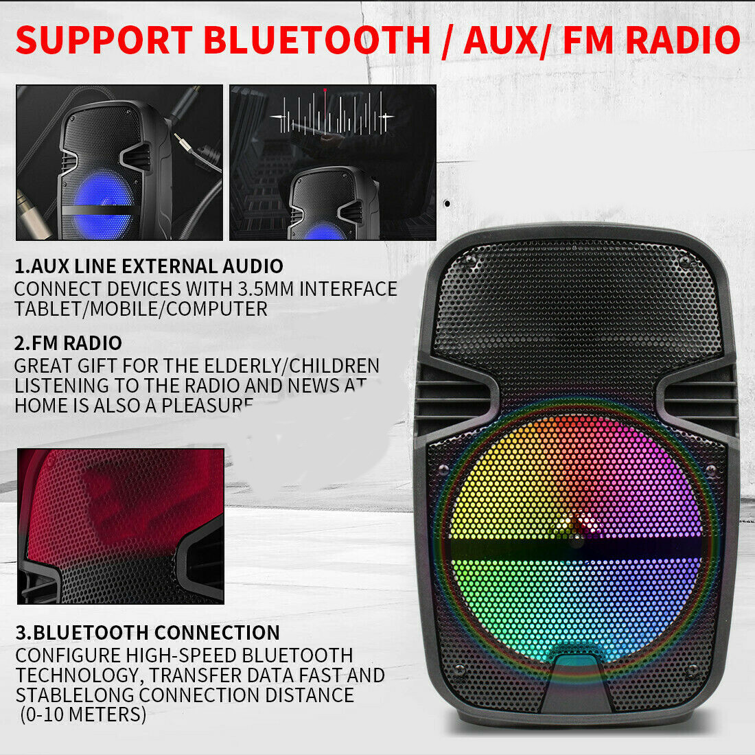 8 Subwoofer Portable Wireless Bluetooth Speaker Sound System Party W/Mic Remote