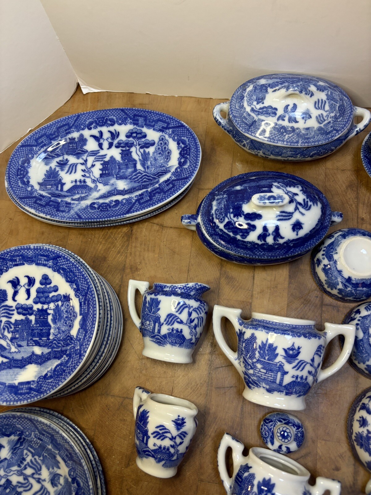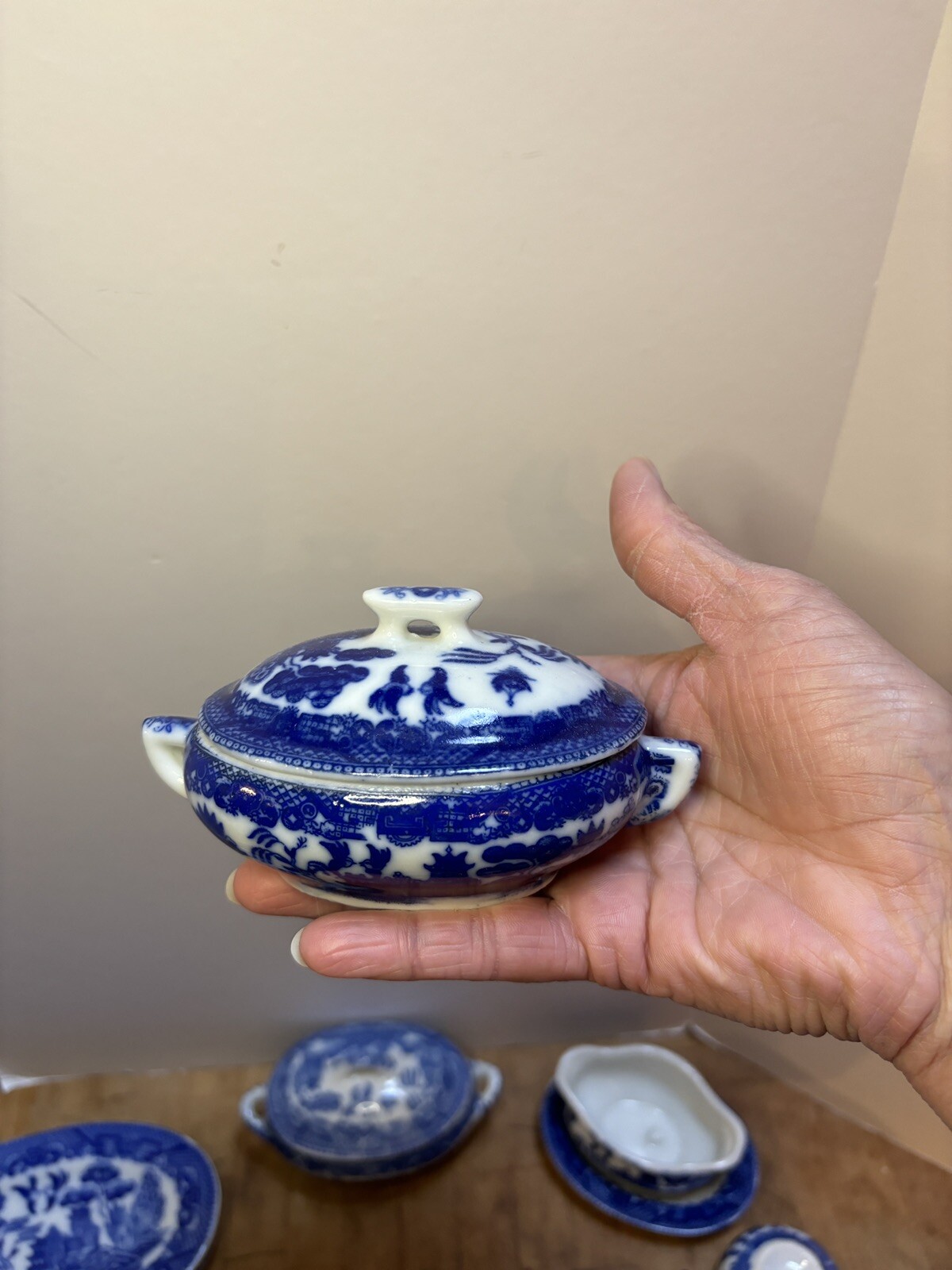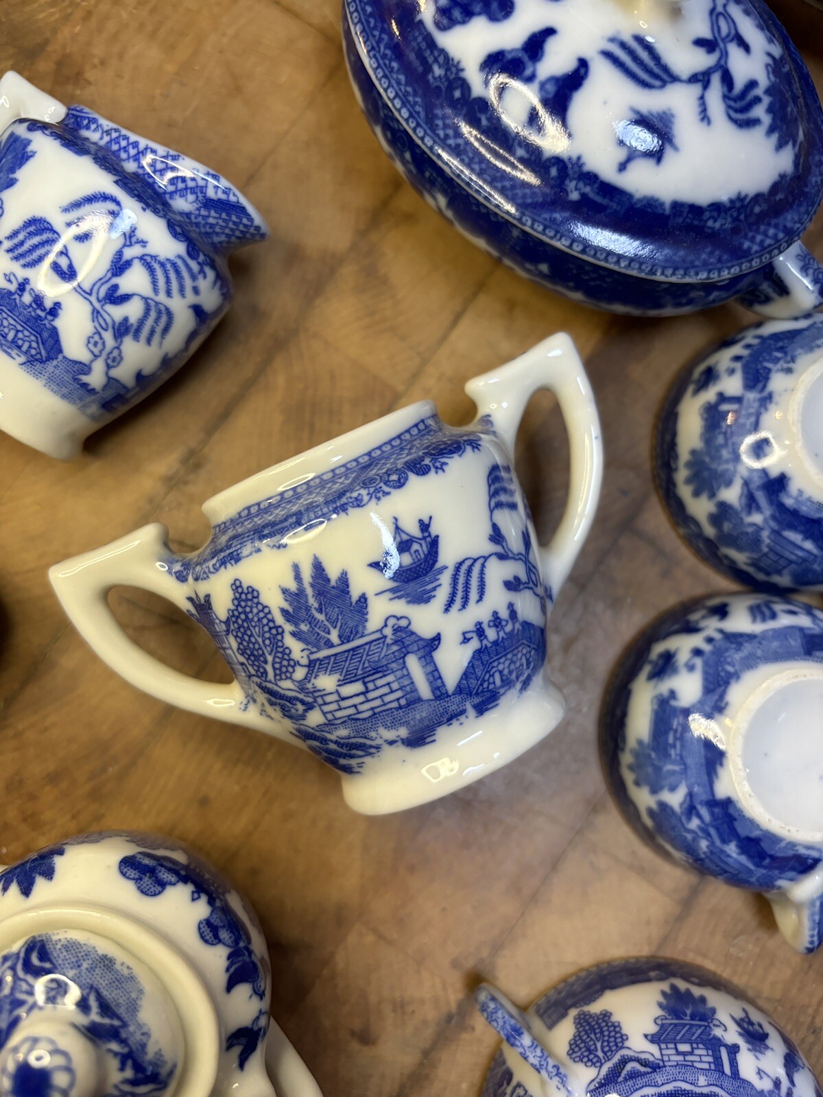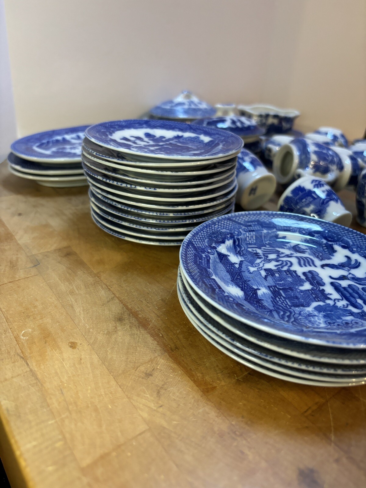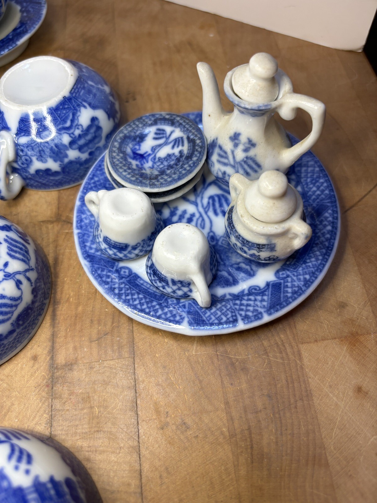 как выглядит HUGE Lot Vintage Child s Blue Willow Tea Set Porcelain 56 Pieces Made in Japan фото