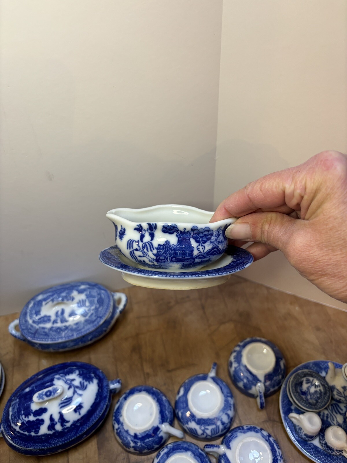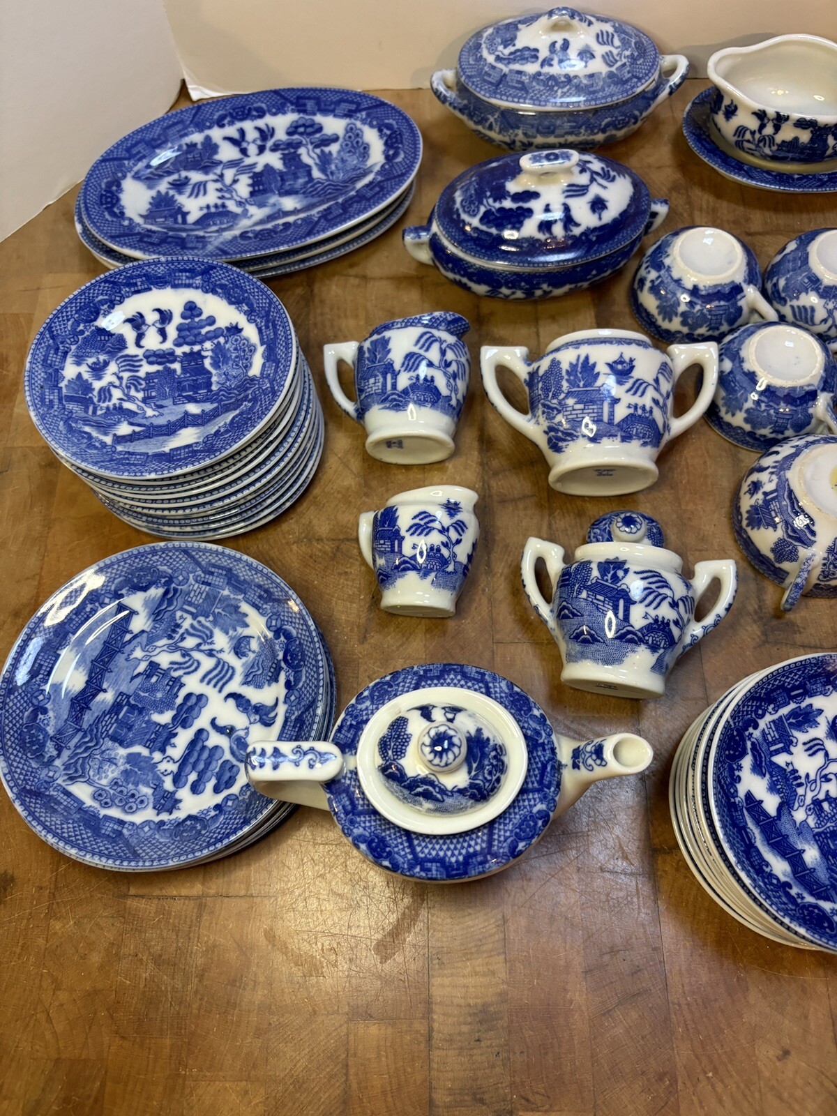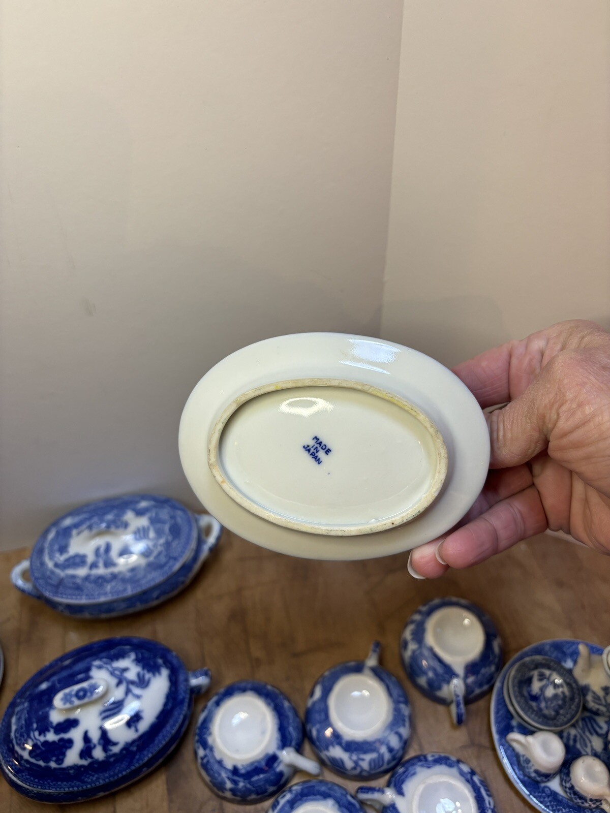 HUGE Lot Vintage Child s Blue Willow Tea Set Porcelain 56 Pieces Made in Japan