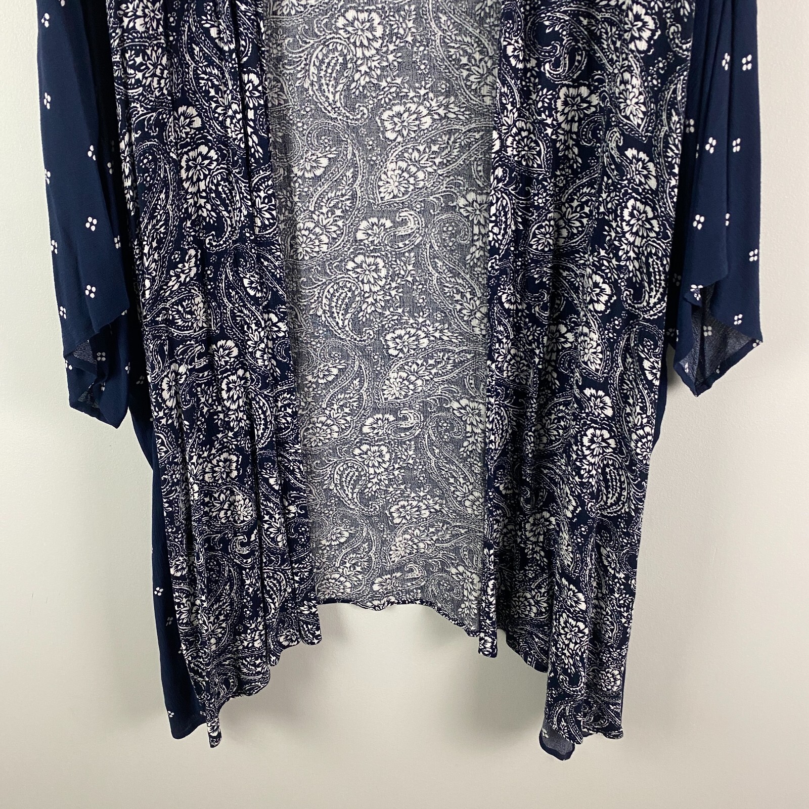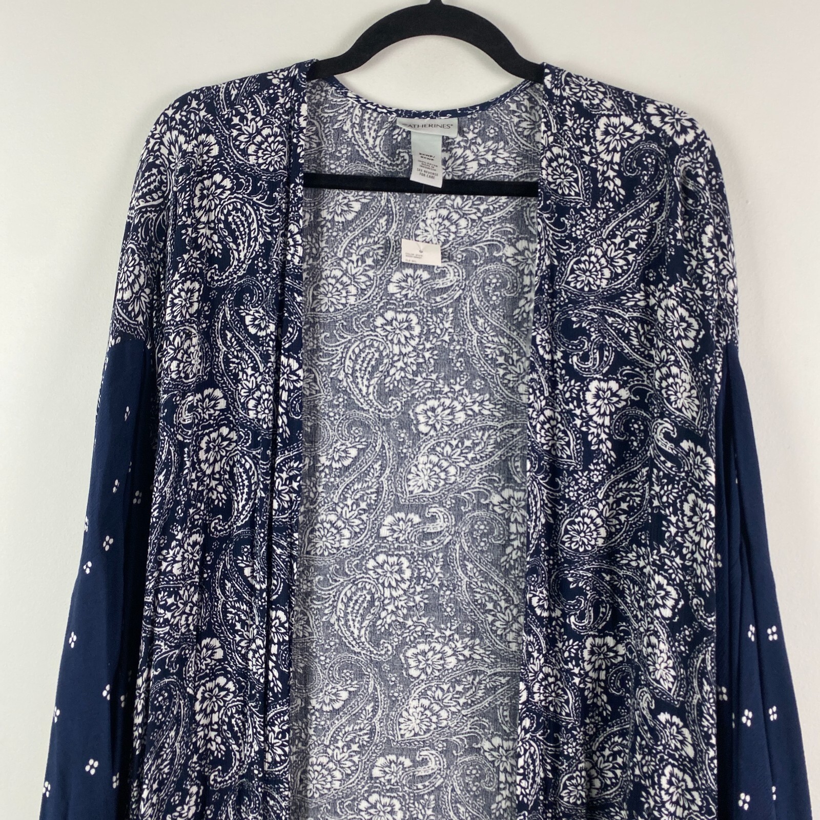 как выглядит Catherines Open Front Kimono Cardigan Size 2XWP / 3XWP Blue Paisley Floral фото