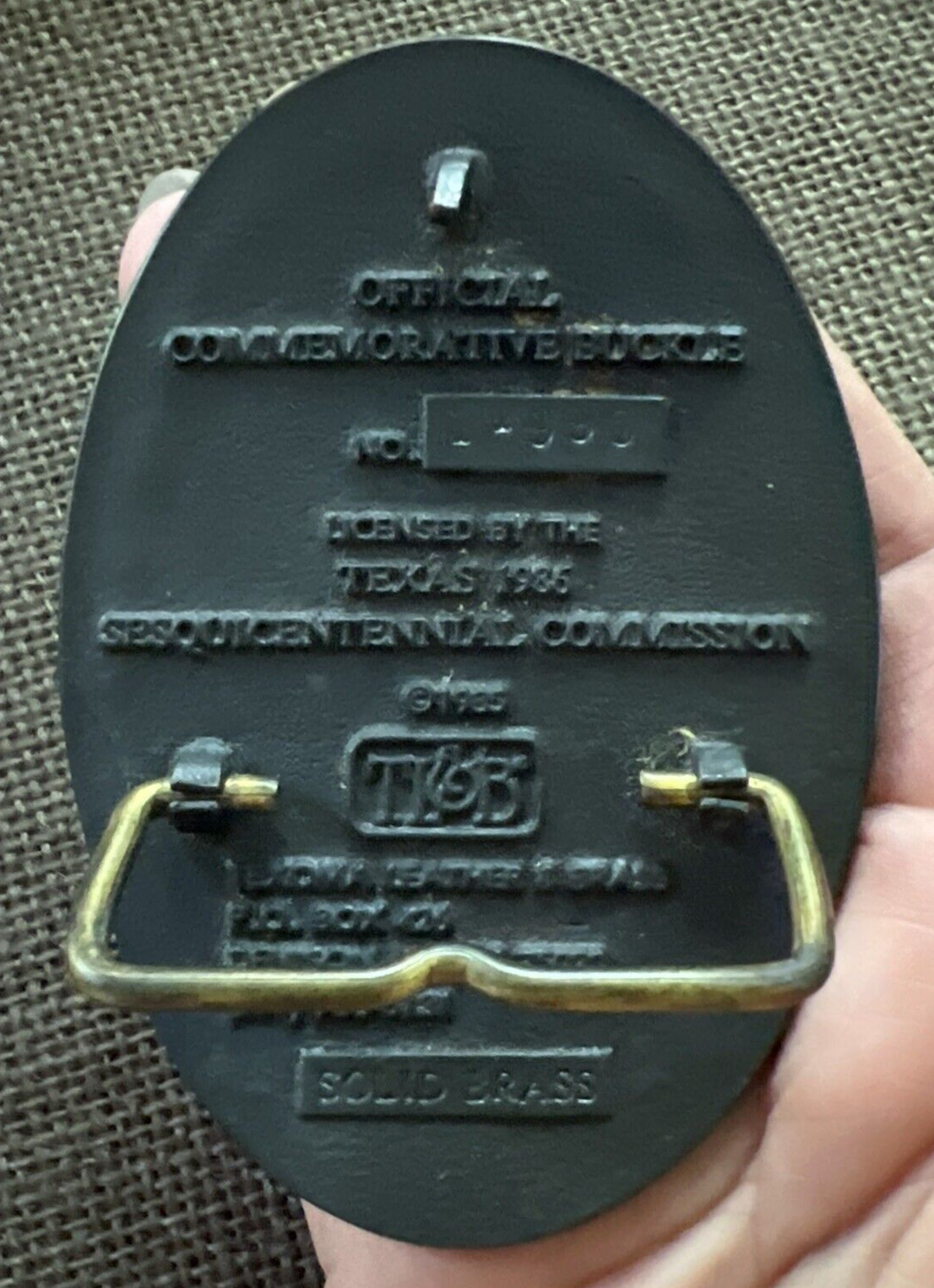 Vintage Belt Buckle Texas State Sesquicentennial 1836-1986 Brass Numbered 11990