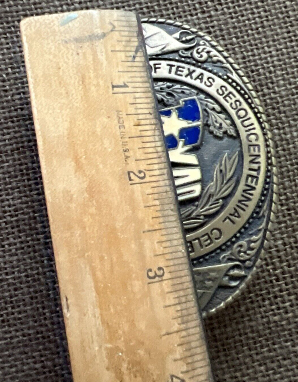 как выглядит Vintage Belt Buckle Texas State Sesquicentennial 1836-1986 Brass Numbered 11990 фото