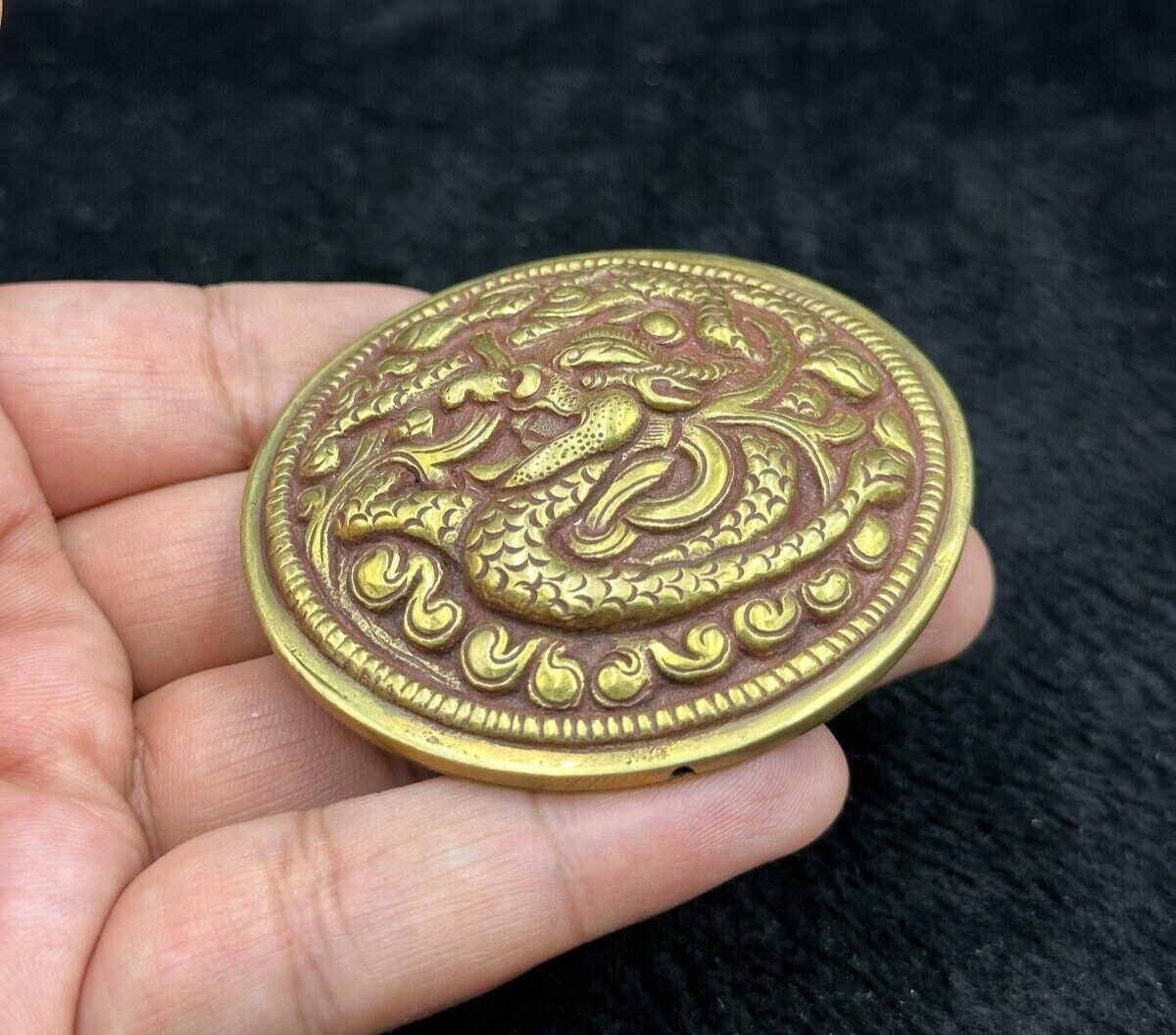 как выглядит Rare VINTAGE Handmade Tibetan Brass Handmade Belt Buckle With Depicting Art фото