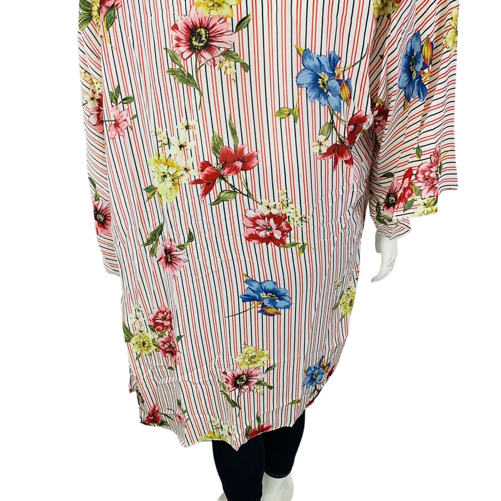 как выглядит New Umgee Womans S/M Topper Kimono Cover Up Duster Stripes Floral Cover Up NWT фото