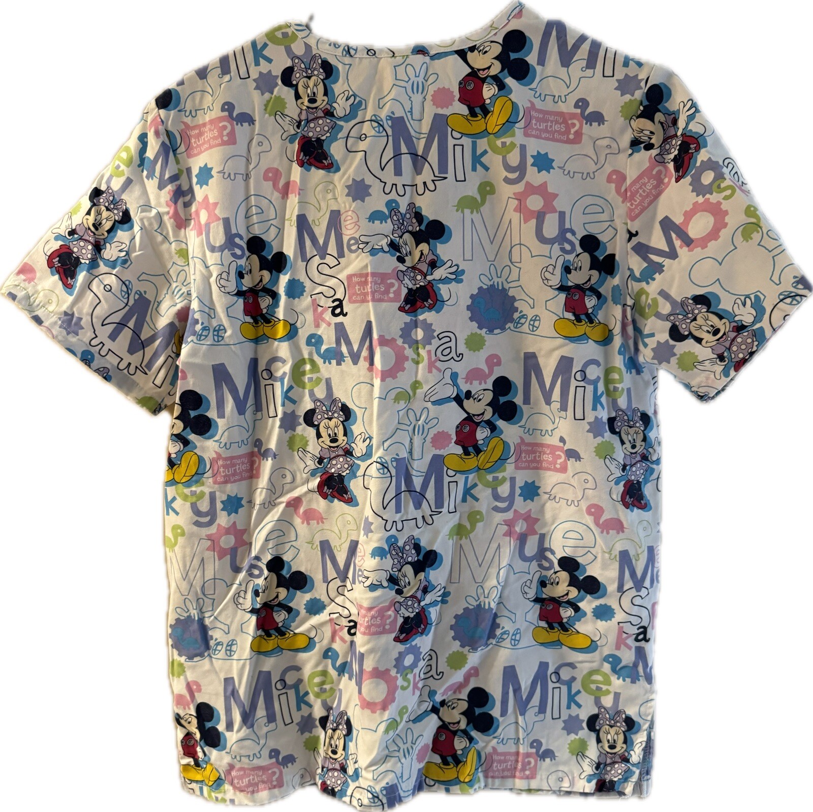 Wonderful World Disney Mickey Minnie Mouse How Many Turtles Scrub Top Sz Small