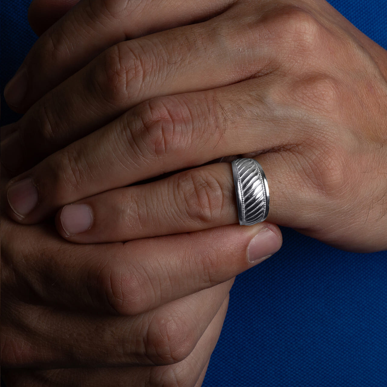 Sterling Silver Beaded Ribbed Band Ring